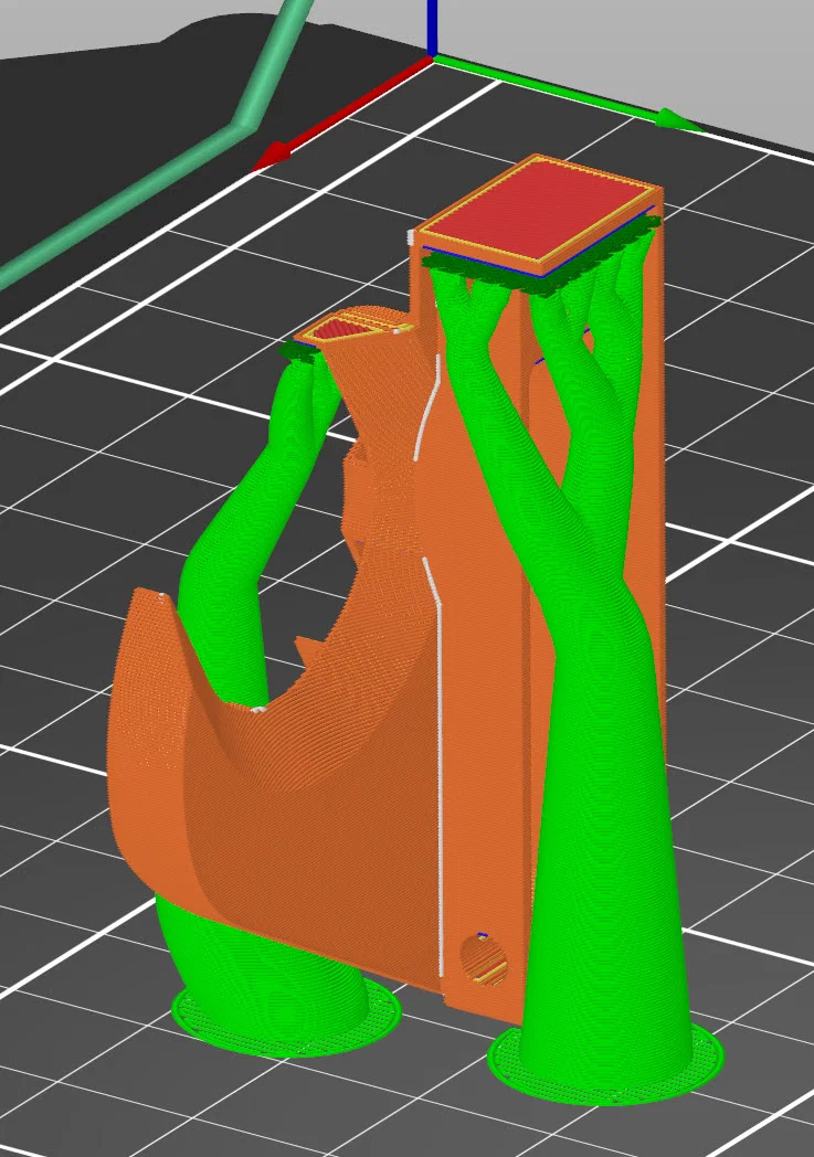 Mẫu này khá dễ in. Bạn cần dùng vòi phun 0.4mm với chiều cao lớp in 0.2mm (chế độ structural) để đạt kết quả tốt nhất. Mình đặc biệt khuyến khích sử dụng support và kiểm soát seam (đường nối) như đã thiết lập trong file 3MF. Hướng đặt trên bàn in cũng rất quan trọng vì phần mềm slicer sẽ dựa vào đó để xác định vị trí đặt seam. Hãy đảm bảo rằng ống dẫn khí được slice với hai perimeters như hình dưới đây.