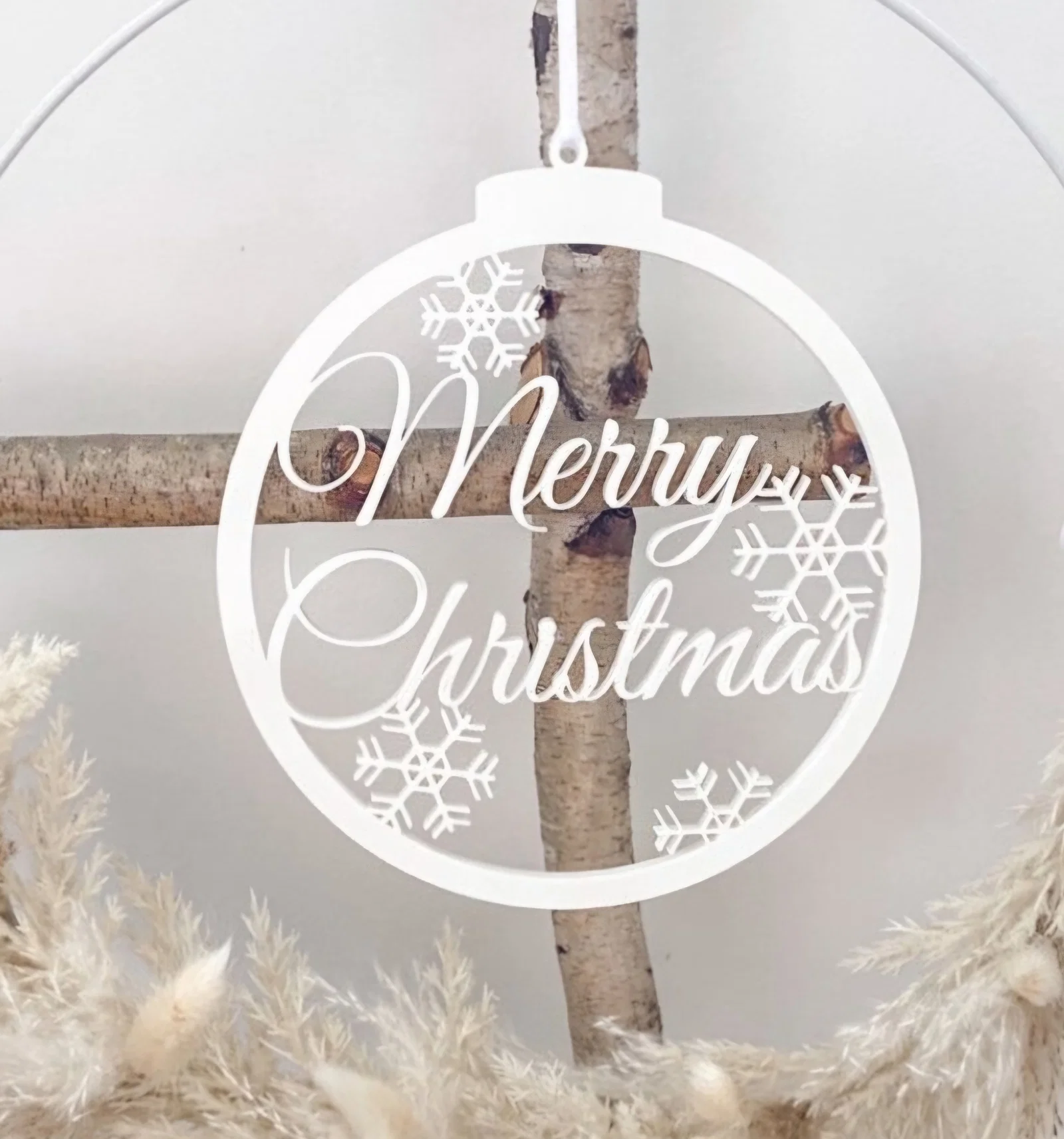 Bạn đang tìm kiếm một món đồ trang trí đơn giản nhưng mang đậm không khí Giáng sinh để tô điểm cho ngôi nhà của mình? Mẫu trang trí hình tròn với dòng chữ "Merry Christmas" cách điệu cùng những bông tuyết tinh xảo này chính là lựa chọn hoàn hảo. Với thiết kế dạng mặt phẳng, sản phẩm không chỉ nhẹ mà còn rất linh hoạt, bạn có thể dễ dàng treo nó lên cây thông Noel, trang trí trên cánh cửa chính hoặc thậm chí dùng làm điểm nhấn trên các vòng nguyệt quế treo tường.