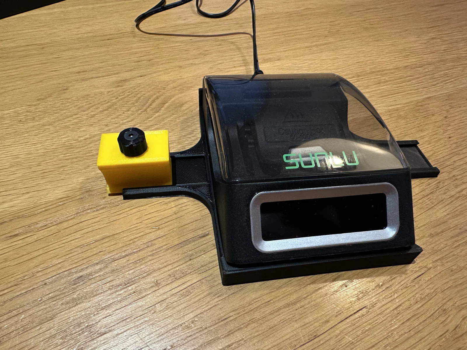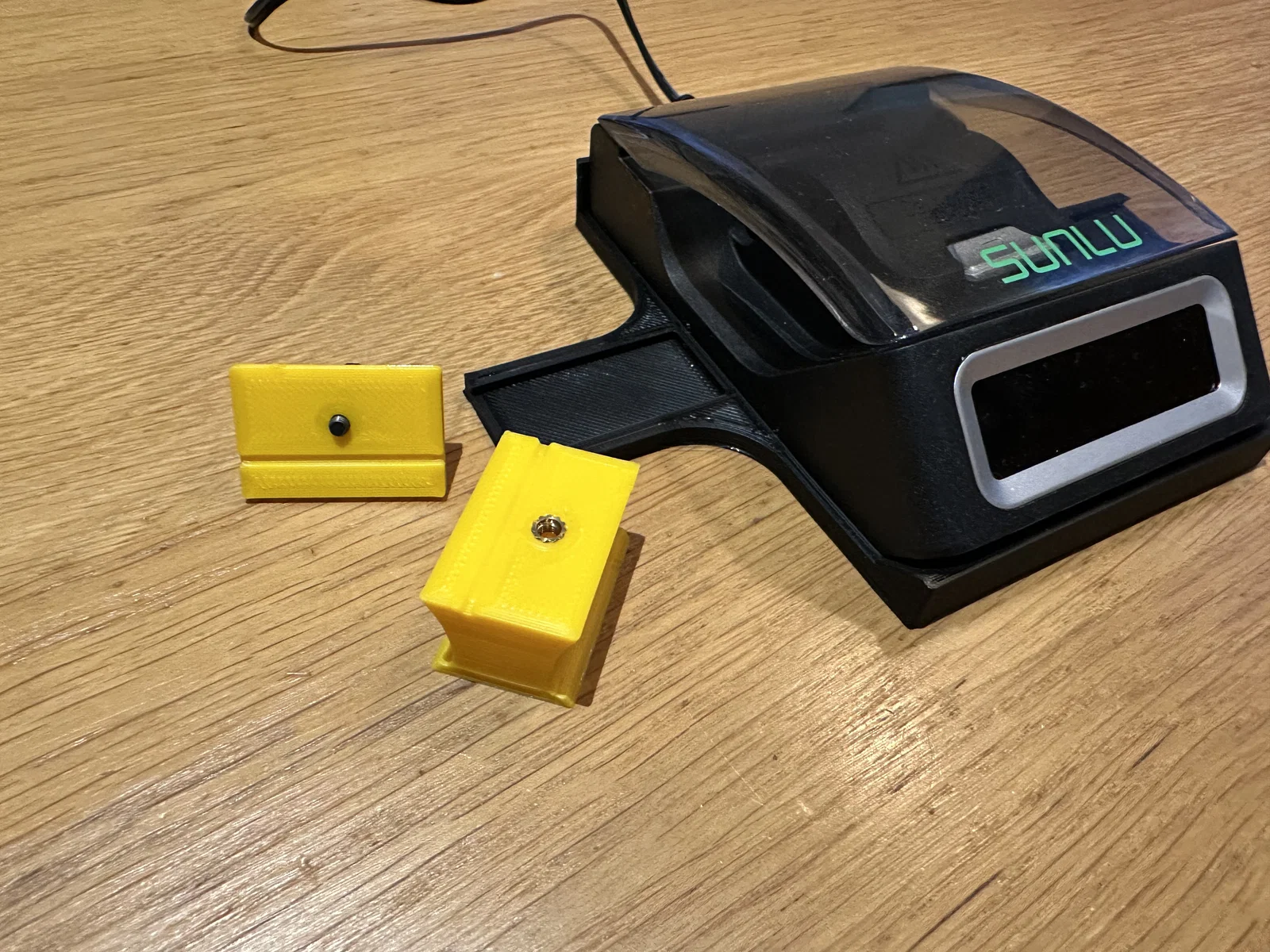 Mình đã thiết kế một cái kẹp giúp bạn giữ chặt và làm thẳng một đầu sợi nhựa. Chỉ cần trượt kẹp vào đế, nó sẽ khớp hoàn hảo với phần bộ phận nối nhựa của Sunlu. Giờ thì bạn đã rảnh tay để thao tác với thiết bị rồi.