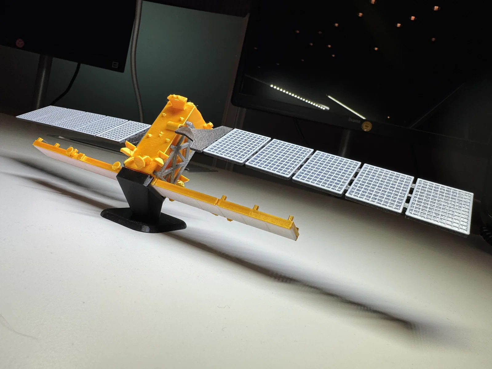 Mô hình vệ tinh Copernicus Sentinel-1 tỷ lệ 1:64. Được tối ưu hóa để in nhiều màu mà không cần đơn vị đa vật liệu (MMU), tái hiện chi tiết chân thực với hướng dẫn in chi tiết cho máy in 3D Prusa MK4.