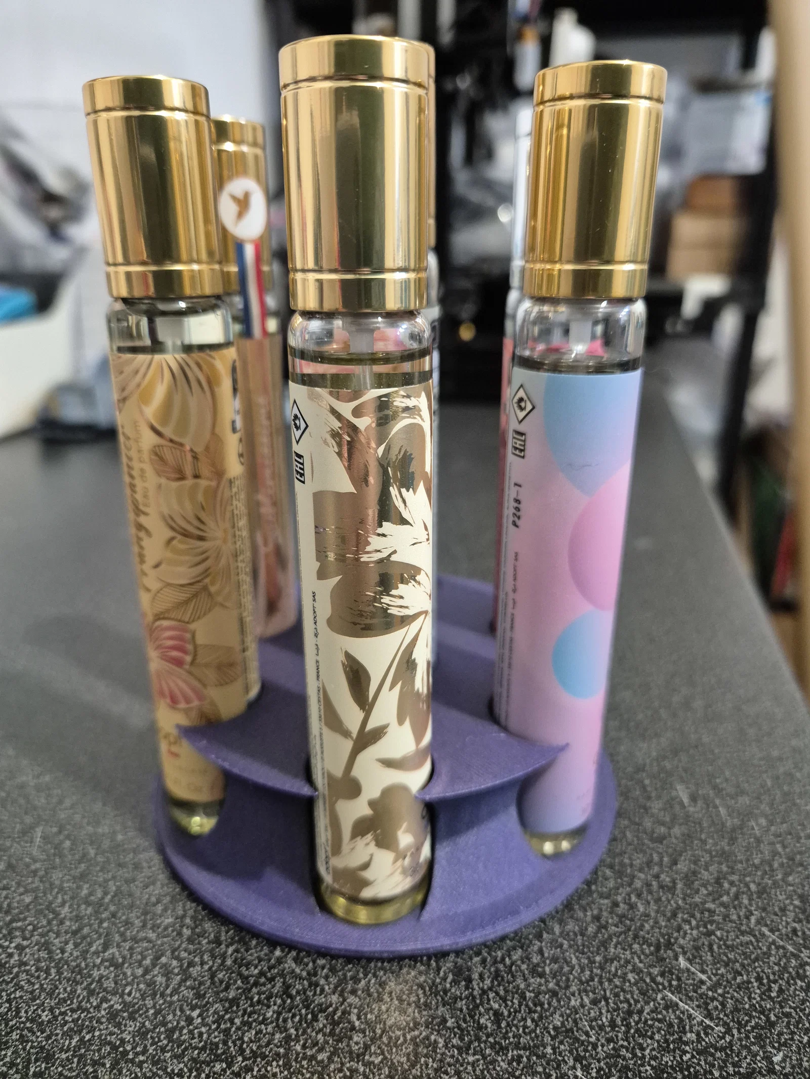 Bạn là tín đồ của dòng nước hoa Adopt' với những chai 30ml nhỏ gọn nhưng chưa biết sắp xếp sao cho gọn gàng trên bàn trang điểm? Chiếc khay in 3D này chính là giải pháp hoàn hảo được thiết kế riêng để chứa tới 7 chai nước hoa dạng ống của thương hiệu này. Với thiết kế hình tròn tinh tế và các ngăn cắt hình vòng cung vừa vặn, nó giúp giữ các chai nước hoa đứng thẳng, không bị đổ ngã hay lăn lóc, đồng thời giúp bạn trưng bày bộ sưu tập yêu thích của mình một cách ngăn nắp và sang trọng.