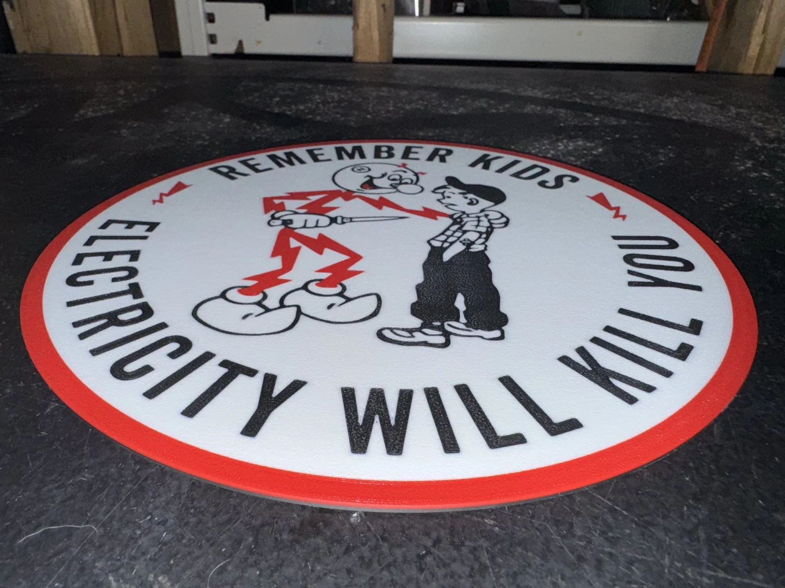 Bảng cảnh báo an toàn điện "Electricity Will Kill You" phiên bản in phẳng