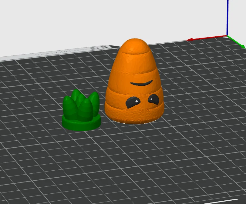 Mình đã hạ thấp phần thân cà rốt xuống 0.5mm trong slicer để tăng diện tích tiếp xúc với bàn in