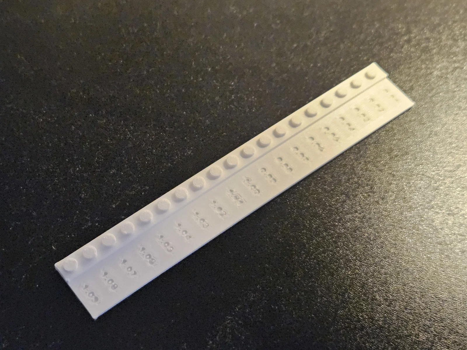 Tấm test cân chỉnh đơn giản giúp bạn tìm ra thông số scale chuẩn nhất để các mảnh gạch in 3D lắp ráp vừa khít. Phù hợp cho việc in các phụ kiện LEGO Dots và gạch 1x1.