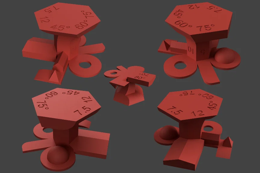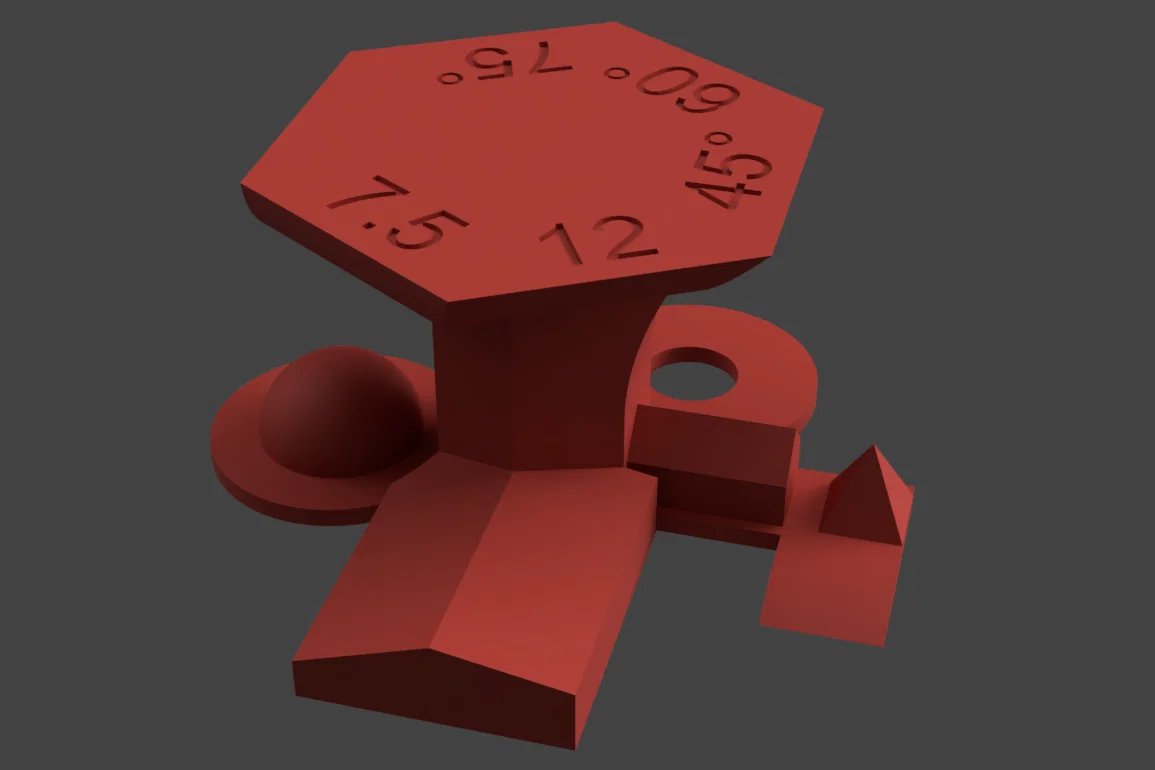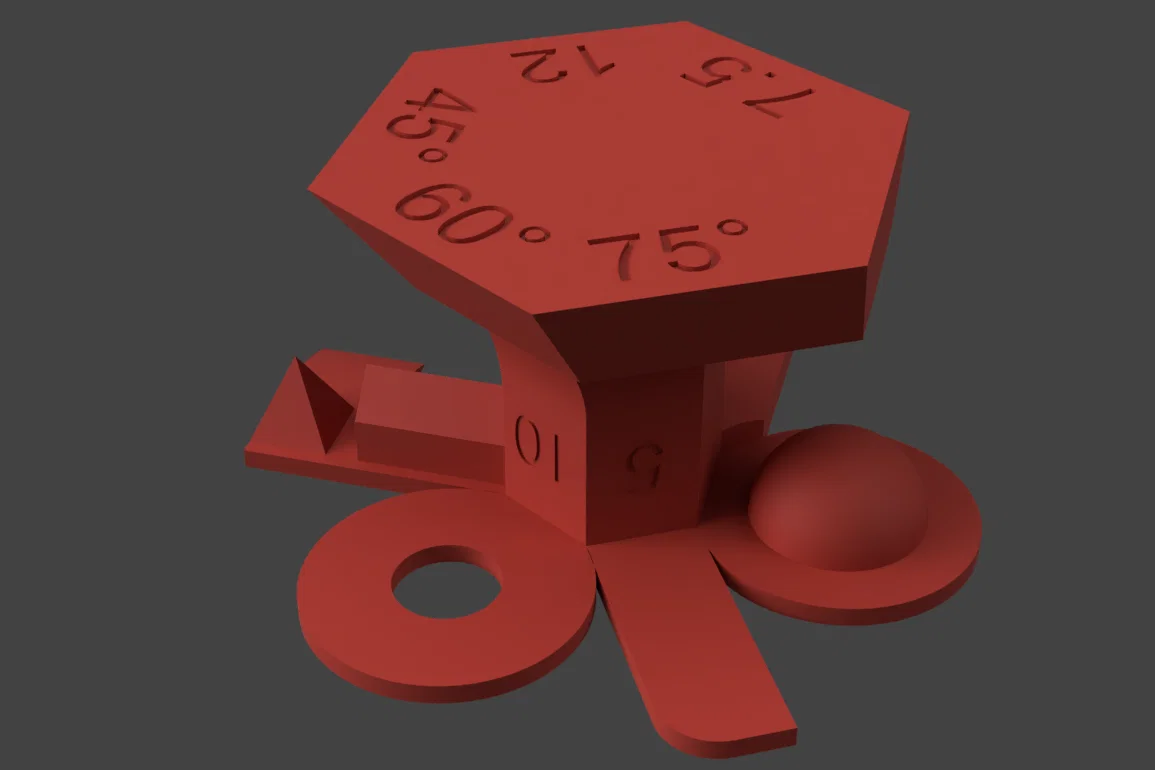 Mình đã cố gắng thiết kế để mẫu này in (tương đối) nhanh, kiểm tra được nhiều khía cạnh nhất có thể mà không mất quá nhiều thời gian để bạn có thể in thử lại nhiều lần. Mình cũng lấy cảm hứng từ Organic/Tree Support Test của mình để kiểm tra các phần nhô ra (overhang) dạng hình tròn.
