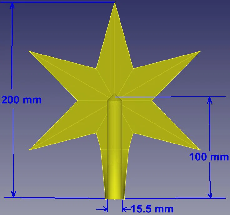 Tạo điểm nhấn cho cây thông Noel của bạn với ngôi sao trang trí đỉnh cây (tree topper) độc đáo này. Thiết kế đi kèm ống cắm, tối ưu cho in 3D với 20cm chiều cao, tiết kiệm vật liệu và thời gian in. Phù hợp cho nhiều loại nhựa PLA.