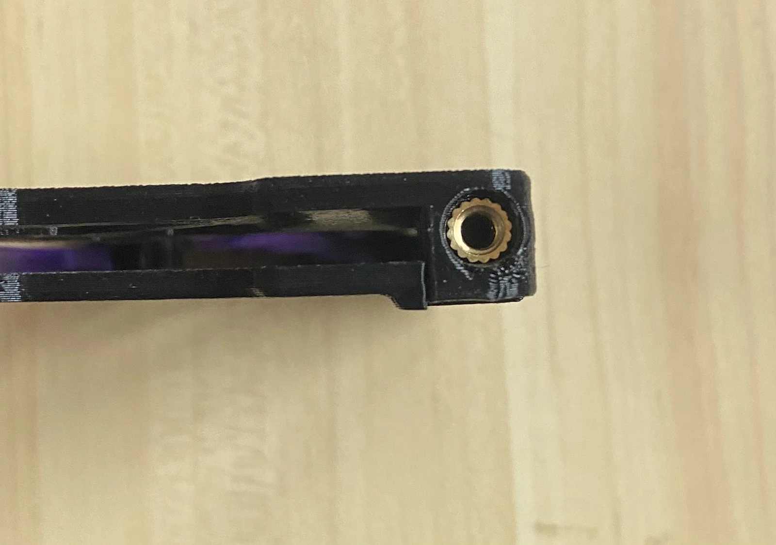 Sau vài lần sử dụng mạnh tay khiến ốc bị lỏng, mình muốn thử dùng threaded insert cho tấm ốp lưng (backplate) để kết cấu cứng cáp hơn. Mình thấy cách này giúp cố định ốc tăng chỉnh tốt hơn hẳn, cho phép siết lực mạnh hơn nhiều so với việc bắt ốc trực tiếp vào nhựa.
