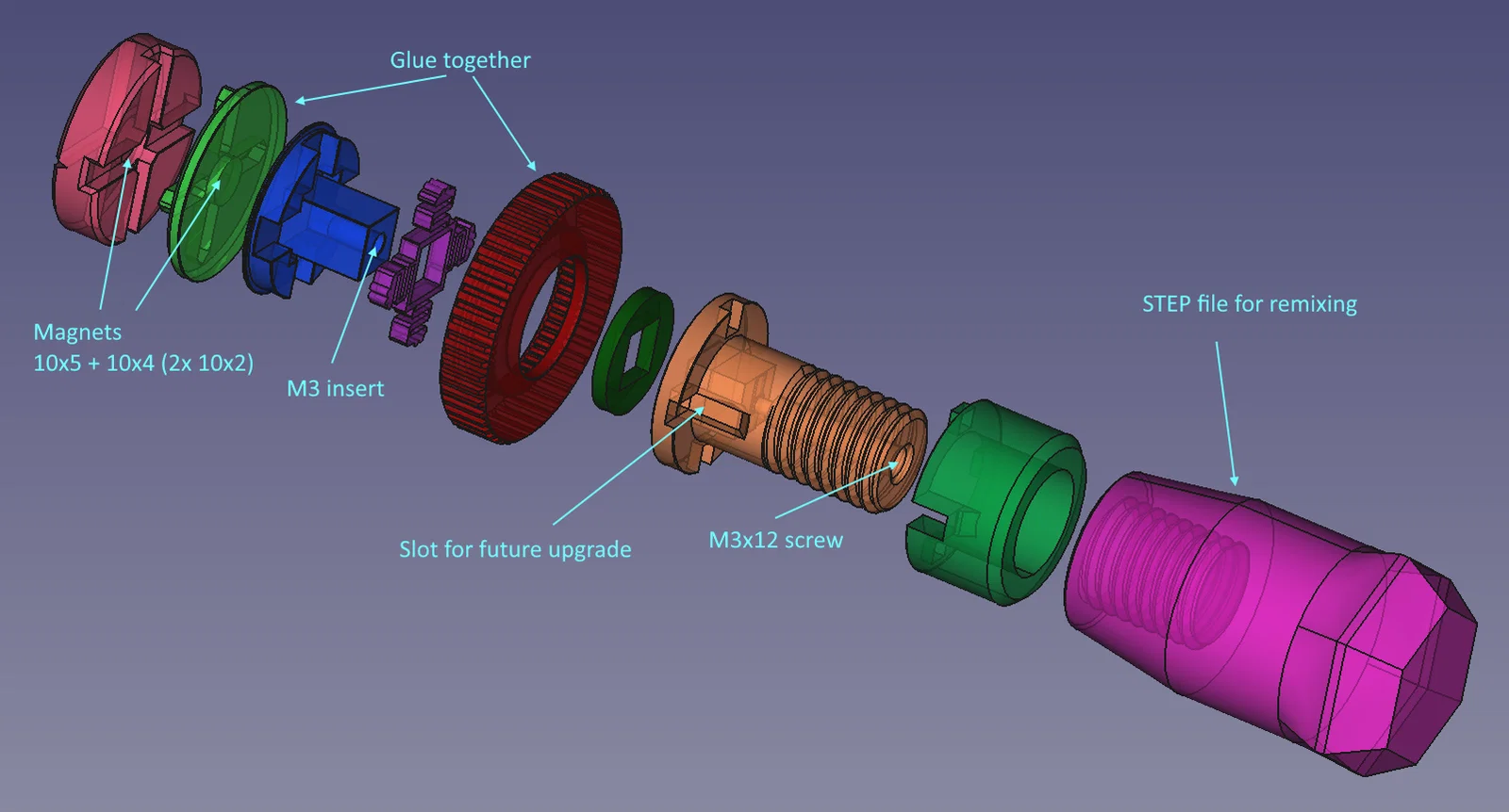 - Ốc cấy M3 (brass insert) (tùy chọn, vì bản in của tôi vừa khít đến mức không cần dùng ốc cũng rất chắc, nhưng bạn cứ chuẩn bị nhé)