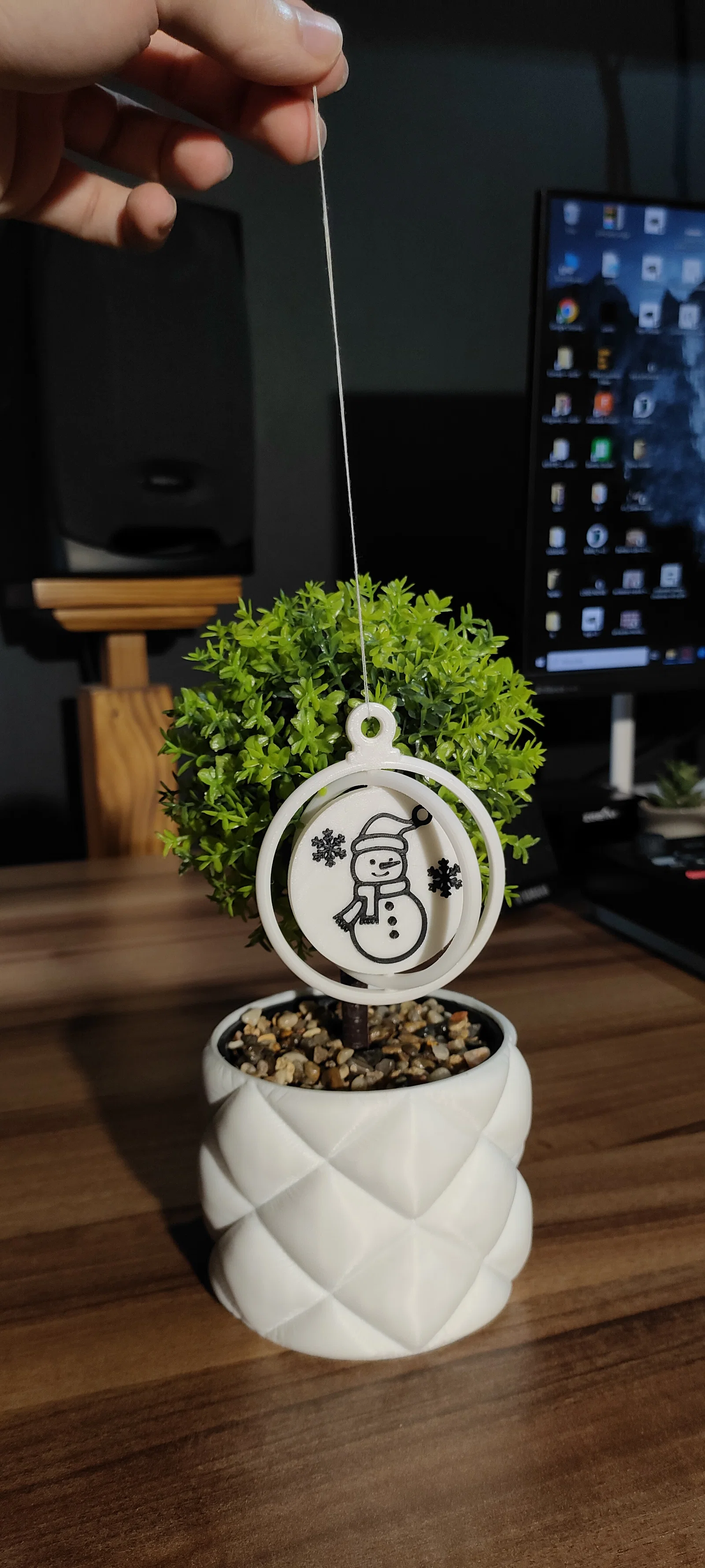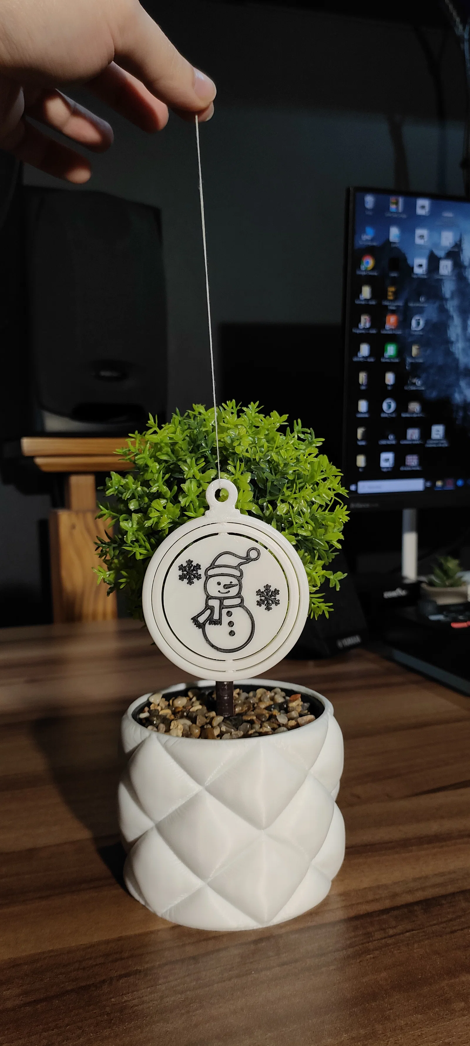 Mẫu đồ trang trí Giáng sinh độc đáo có hình người tuyết và hoa tuyết xinh xắn, thiết kế đặc biệt để có thể xoay được. Đây là sản phẩm hoàn hảo để làm điểm nhấn trang trí cho không gian nhà bạn trong mùa lễ hội cuối năm.