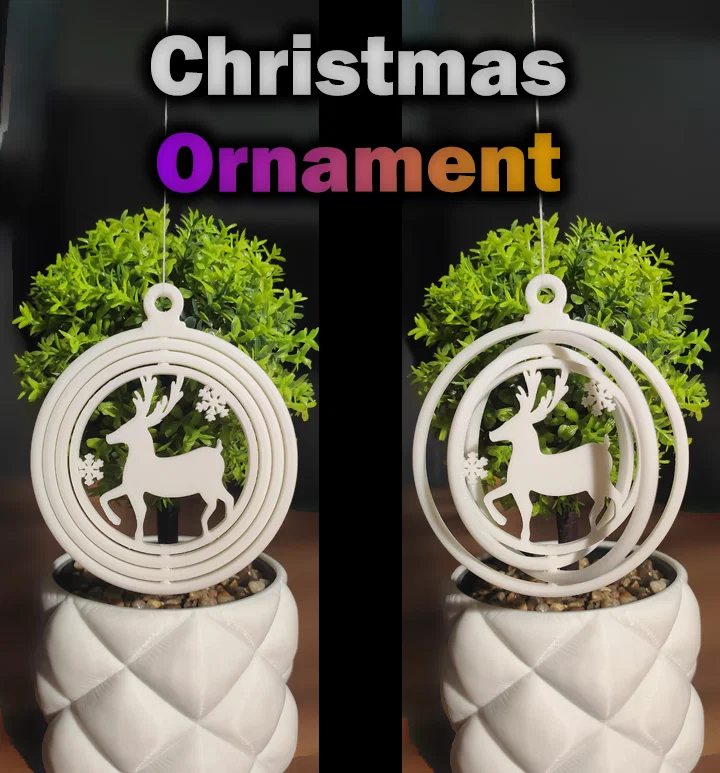 Mời bạn khám phá mẫu trang trí Giáng sinh xoay cực đẹp với họa tiết chú tuần lộc đáng yêu. Mô hình này rất dễ in và sẽ là điểm nhấn tuyệt vời cho cây thông nhà bạn trong mùa lễ hội 2024 này.