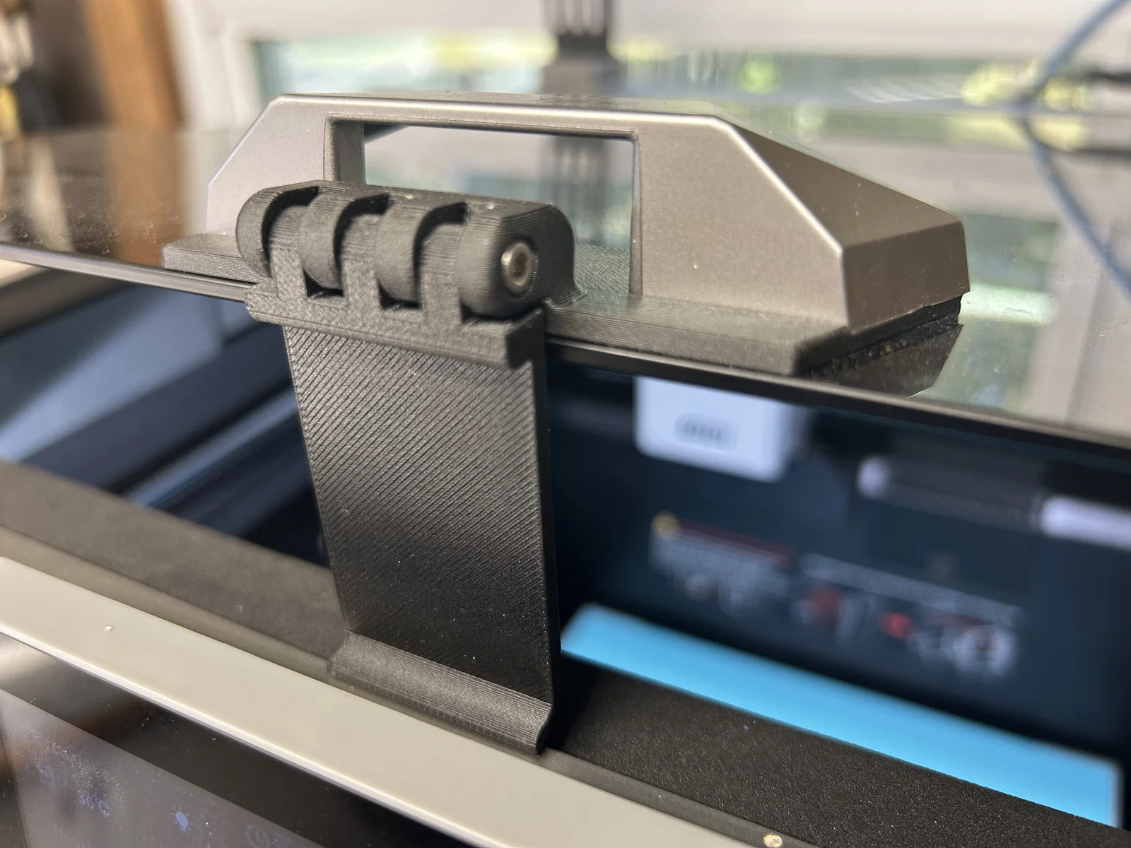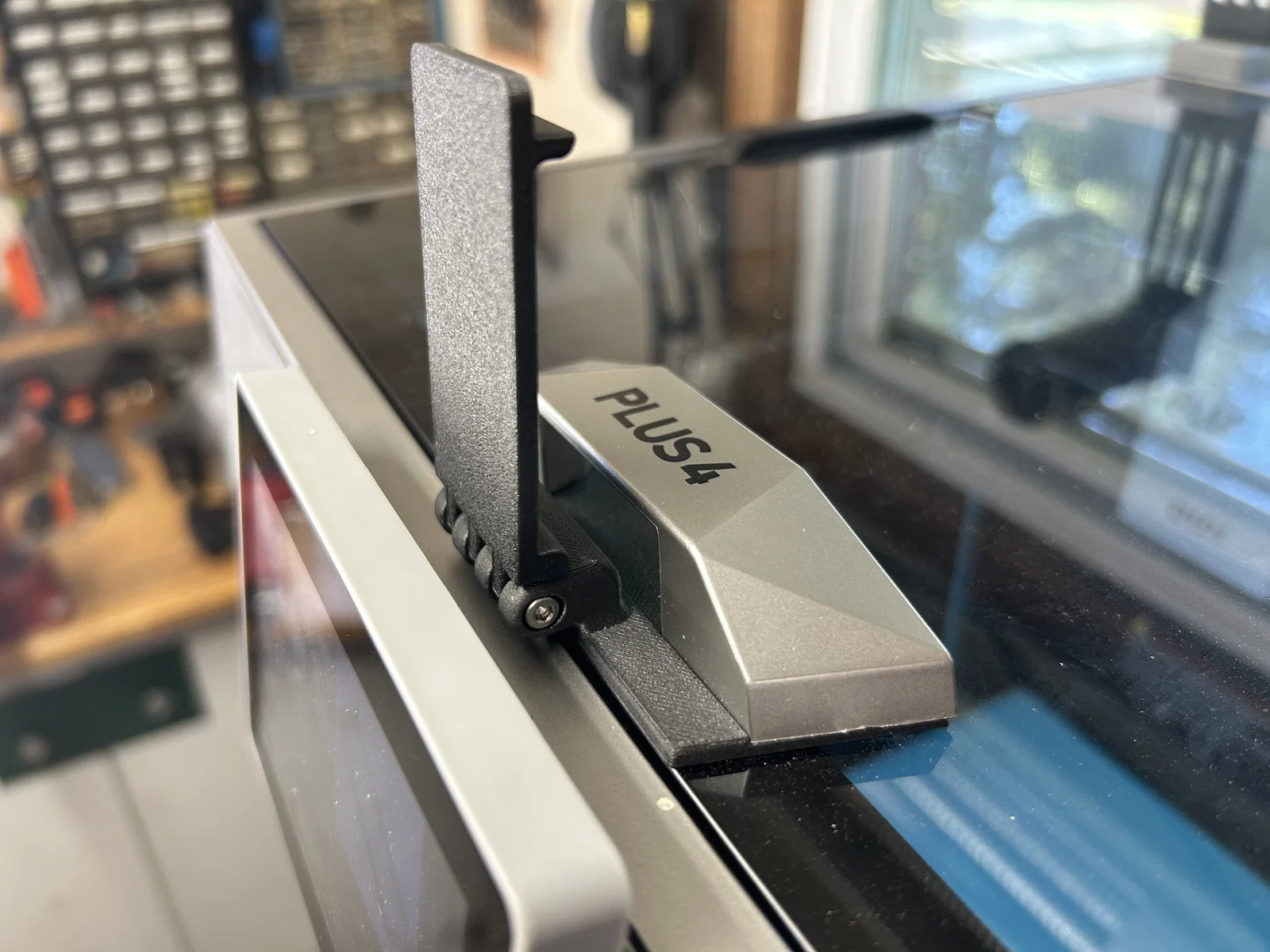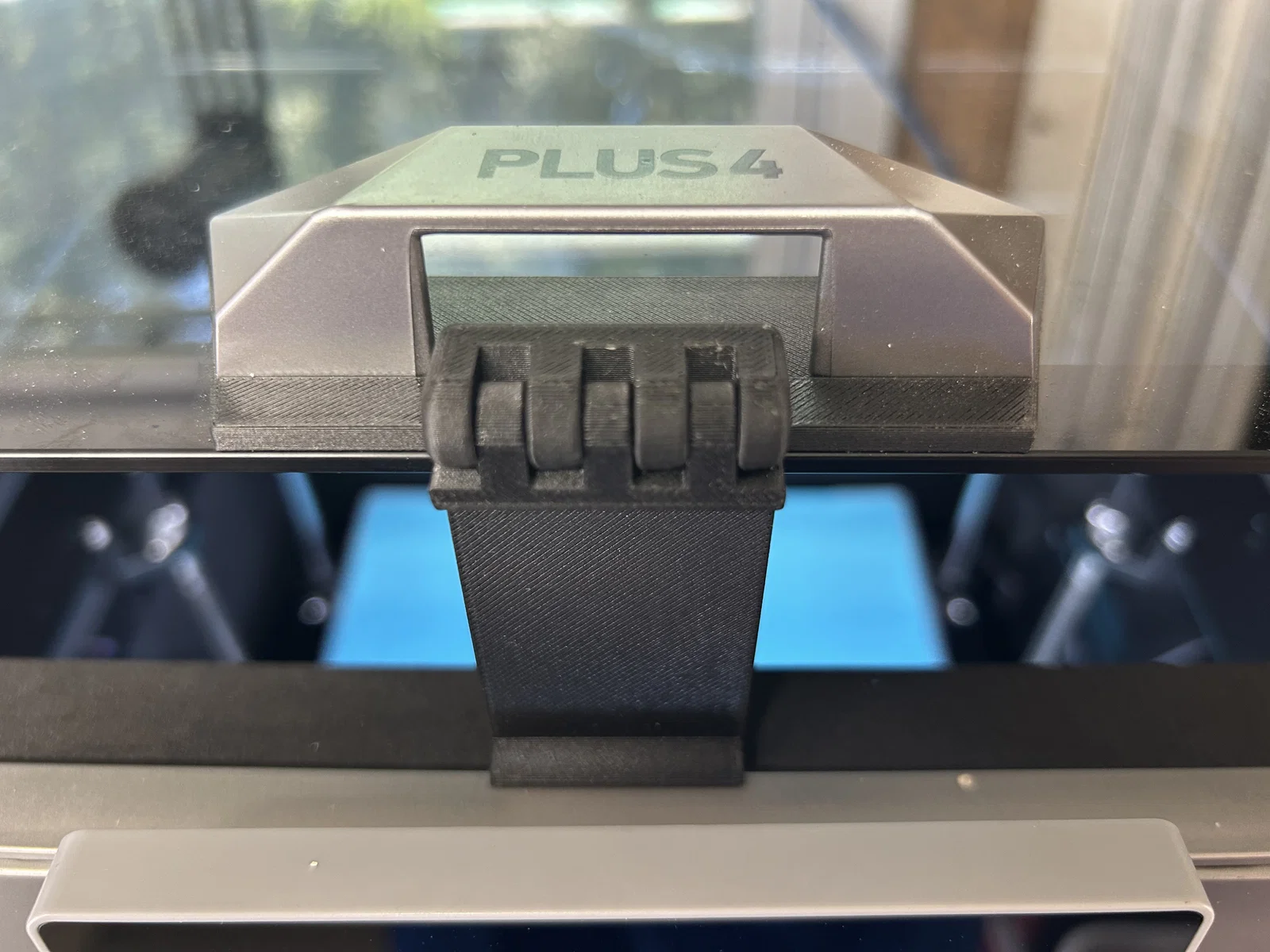 Giải pháp giá đỡ gắn cố định vào mặt kính trên máy in Qidi Plus 4, giúp thông gió hiệu quả khi in PLA/PETG và dễ dàng tháo rời khi cần in nhựa chịu nhiệt cao. Thiết kế tận dụng ốc vít đi kèm máy rất tiện lợi.