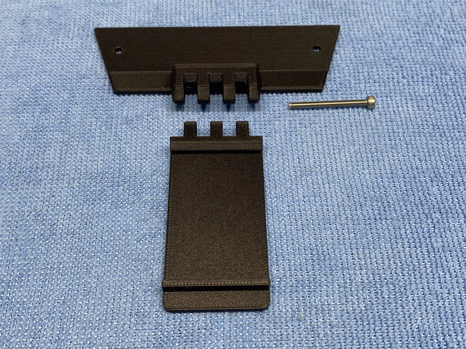 Thiết kế này tận dụng một trong những ốc vít M3 x 32 đi kèm máy (loại dùng để cố định bàn in khi vận chuyển). Riêng phần tay cầm sẽ cần dùng ốc dài hơn một chút (M3 x 10). Các bạn lưu ý không dùng ốc ngắn hơn nhé, vì tay cầm có thể bị tuột ra và làm rơi tấm kính.
