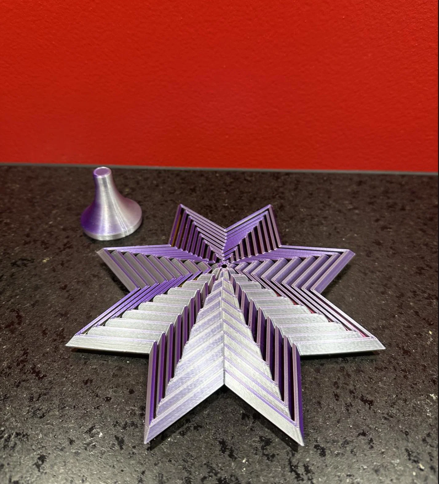Khám phá mô hình ngôi sao lồng nhau ấn tượng với kích thước tiêu chuẩn 200mm. Bạn có thể dễ dàng tùy chỉnh kích thước bằng phần mềm slicer để tạo ra các biến thể độc đáo. Đừng quên sử dụng support để ngôi sao trông nổi bật và sắc nét hơn.