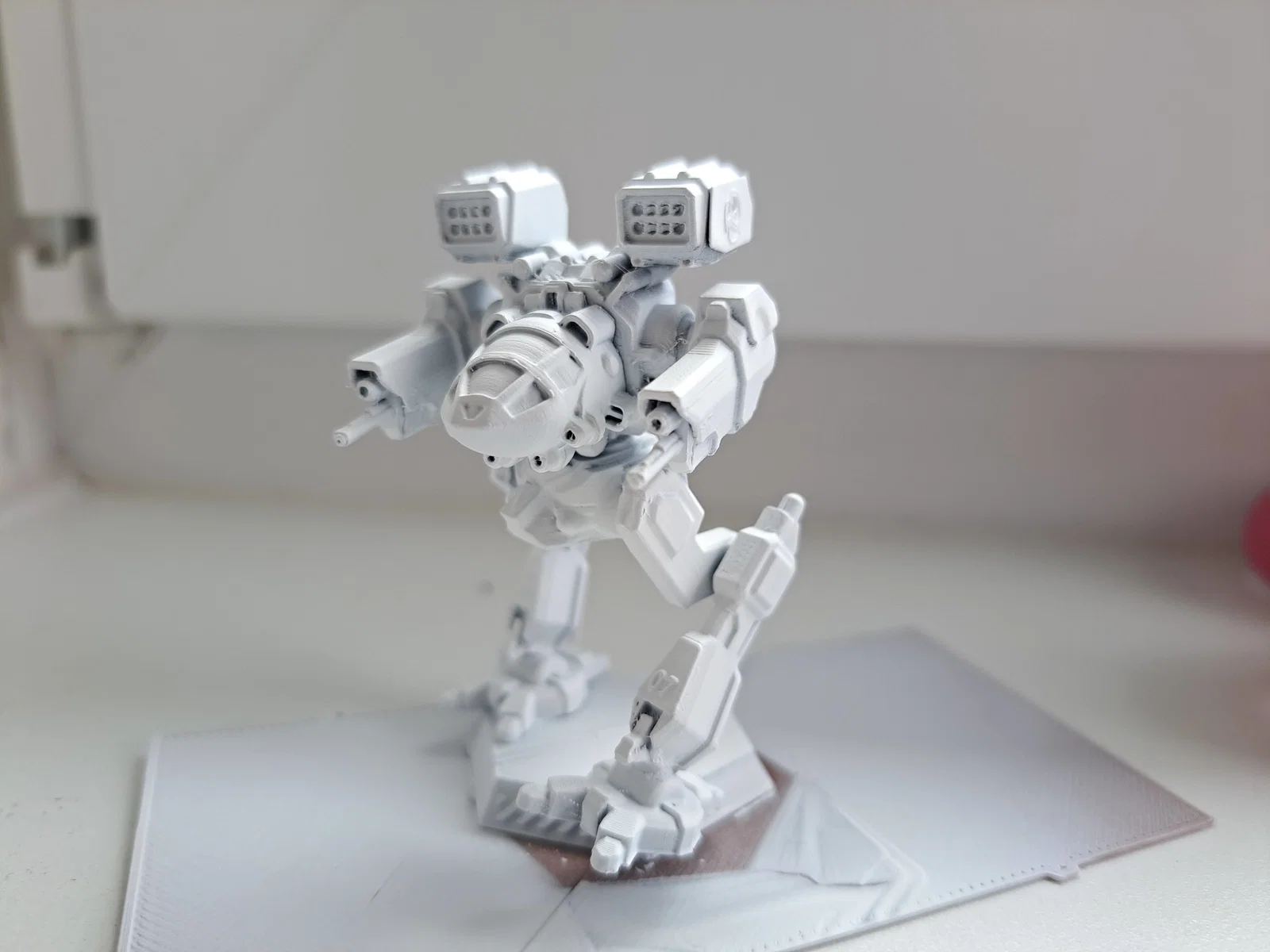 Mô hình thay thế cho chiếc Clan mech mang tính biểu tượng nhất với hình dáng không thể nhầm lẫn. Mô hình trong ảnh được in bằng máy Prusa MK4 với đầu phun 0.25, nhựa PrintWithSmile Rec-PLA (màu xám) và chiều cao lớp in 0.07 mm.