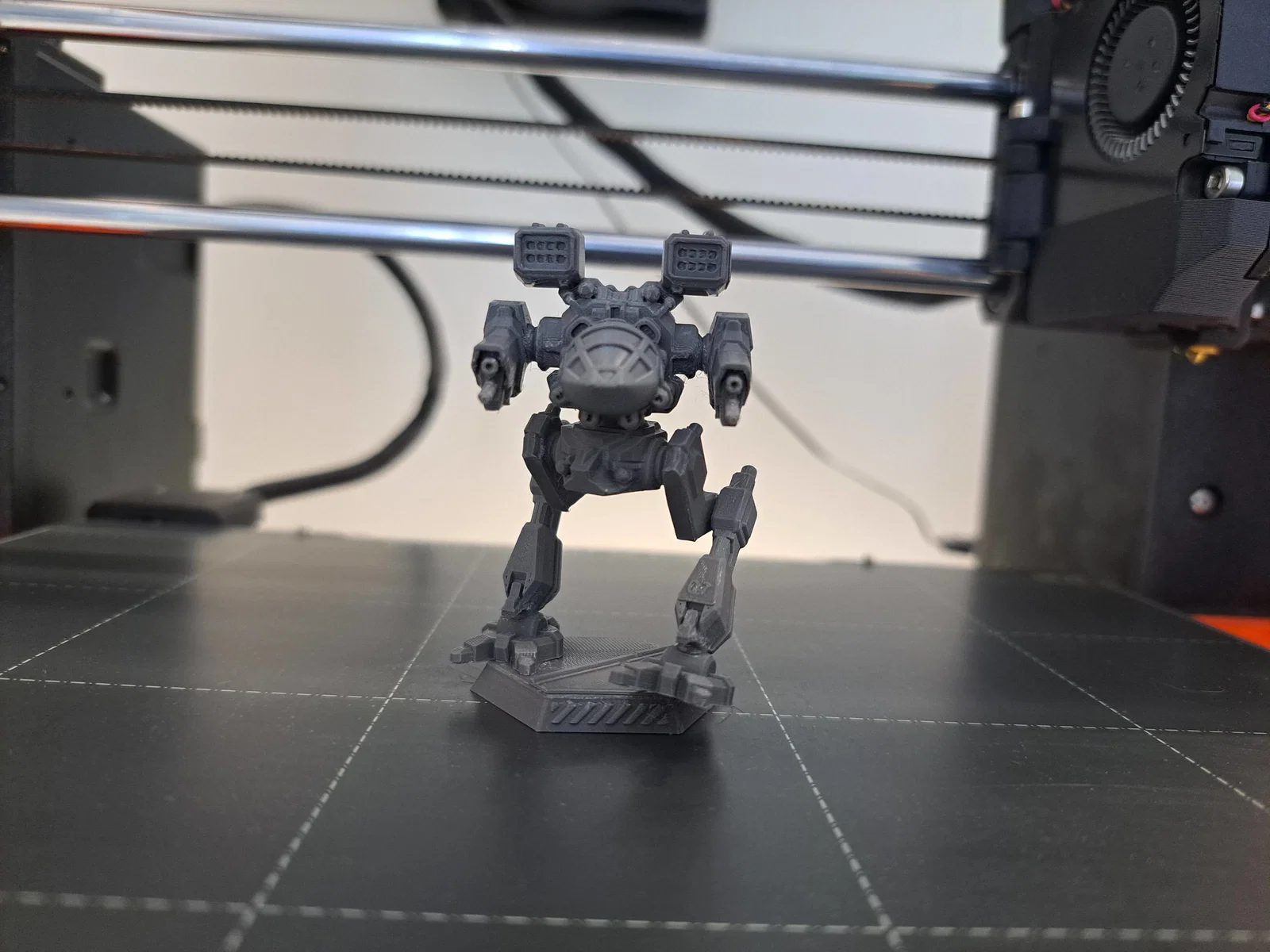 Mô hình Mech 4 cm mang tính biểu tượng cho các trận wargame, thiết kế tối ưu cho máy in FDM mà không cần support. Tỉ lệ 6mm đòi hỏi độ chính xác cao khi in.