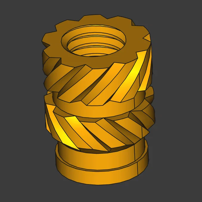 ⚠ Không dùng để in. Đây thuần túy chỉ là tham chiếu về hình ảnh và kích thước để giúp bạn định hướng khi thiết kế các chi tiết cần tích hợp tán cấy nhiệt M3. Để đạt kết quả tốt nhất, bạn hãy dùng mô hình này để canh chỉnh, chọn kích thước hoặc lên kế hoạch lắp đặt tán cấy vào dự án của mình.
