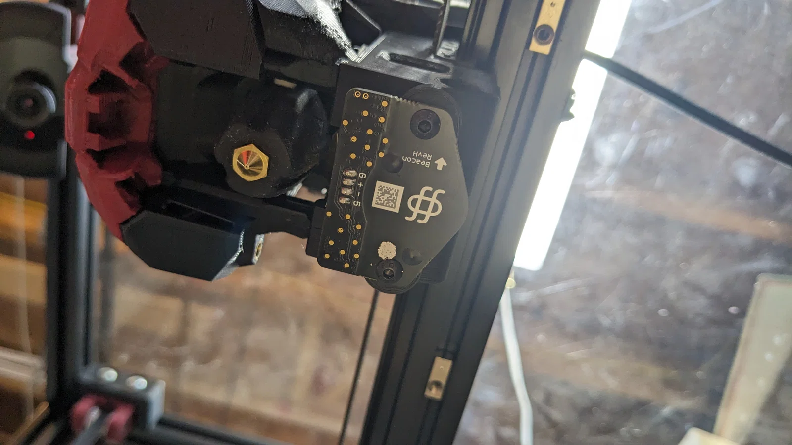 Mình đã cấu hình y_offset là 32 mm trong cài đặt máy in. Mình chưa gặp vấn đề quá nhiệt nào với đầu dò mới này. Để cẩn thận hơn, mình có dán thêm lớp băng keo chịu nhiệt/phản quang màu vàng lên dây dẫn.