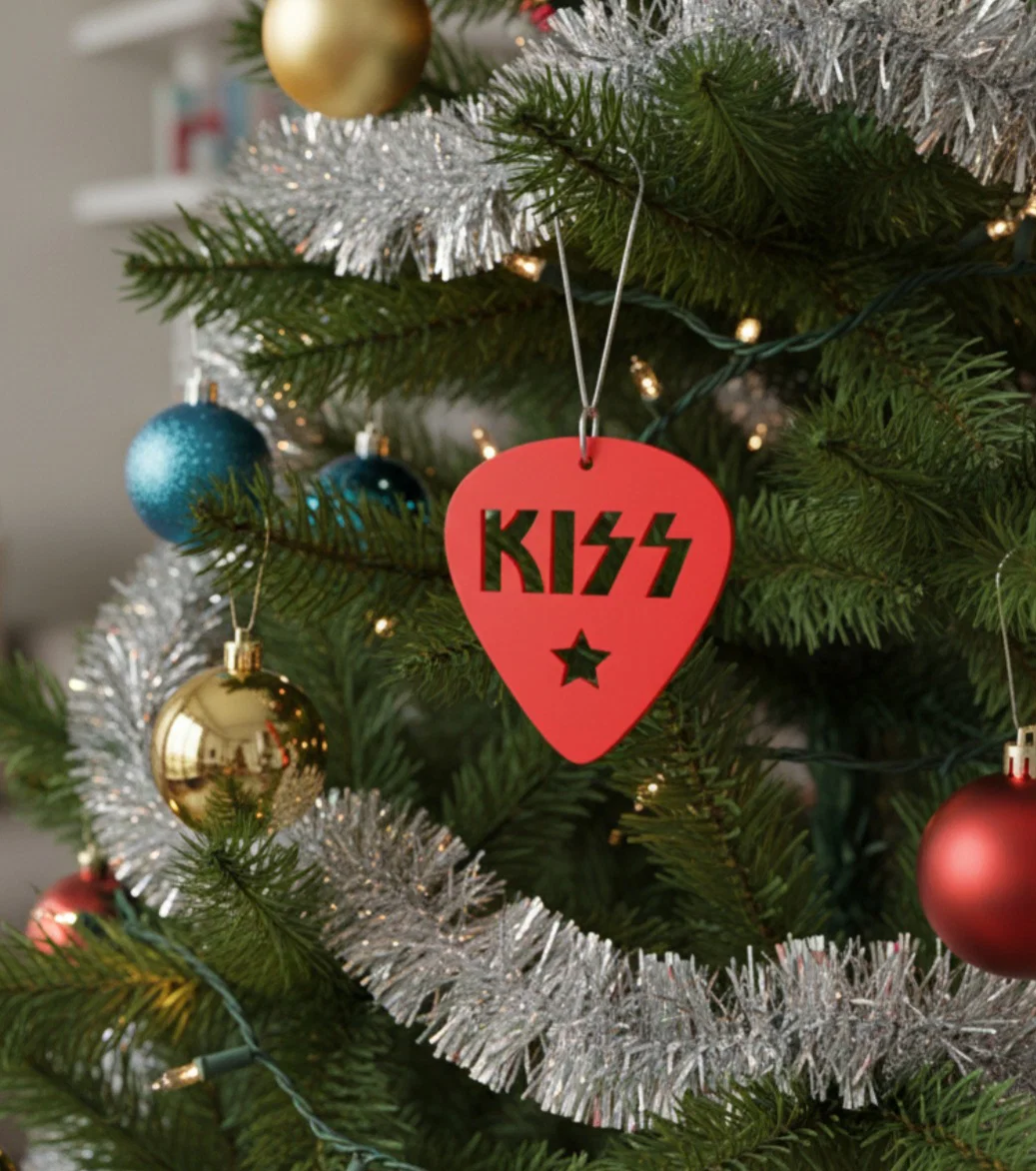 Bạn là một fan hâm mộ cuồng nhiệt của ban nhạc huyền thoại KISS và đang muốn tạo điểm nhấn độc đáo cho không gian đón Giáng sinh năm nay? Món đồ trang trí lấy cảm hứng từ hình dáng chiếc phím đàn guitar (guitar pick) với logo KISS đặc trưng này chính là lựa chọn hoàn hảo dành cho bạn. Với thiết kế tinh tế, sản phẩm không chỉ mang đậm phong cách rock 'n' roll mà còn tạo nên sự khác biệt hoàn toàn so với những món phụ kiện truyền thống thông thường trên cây thông Noel.