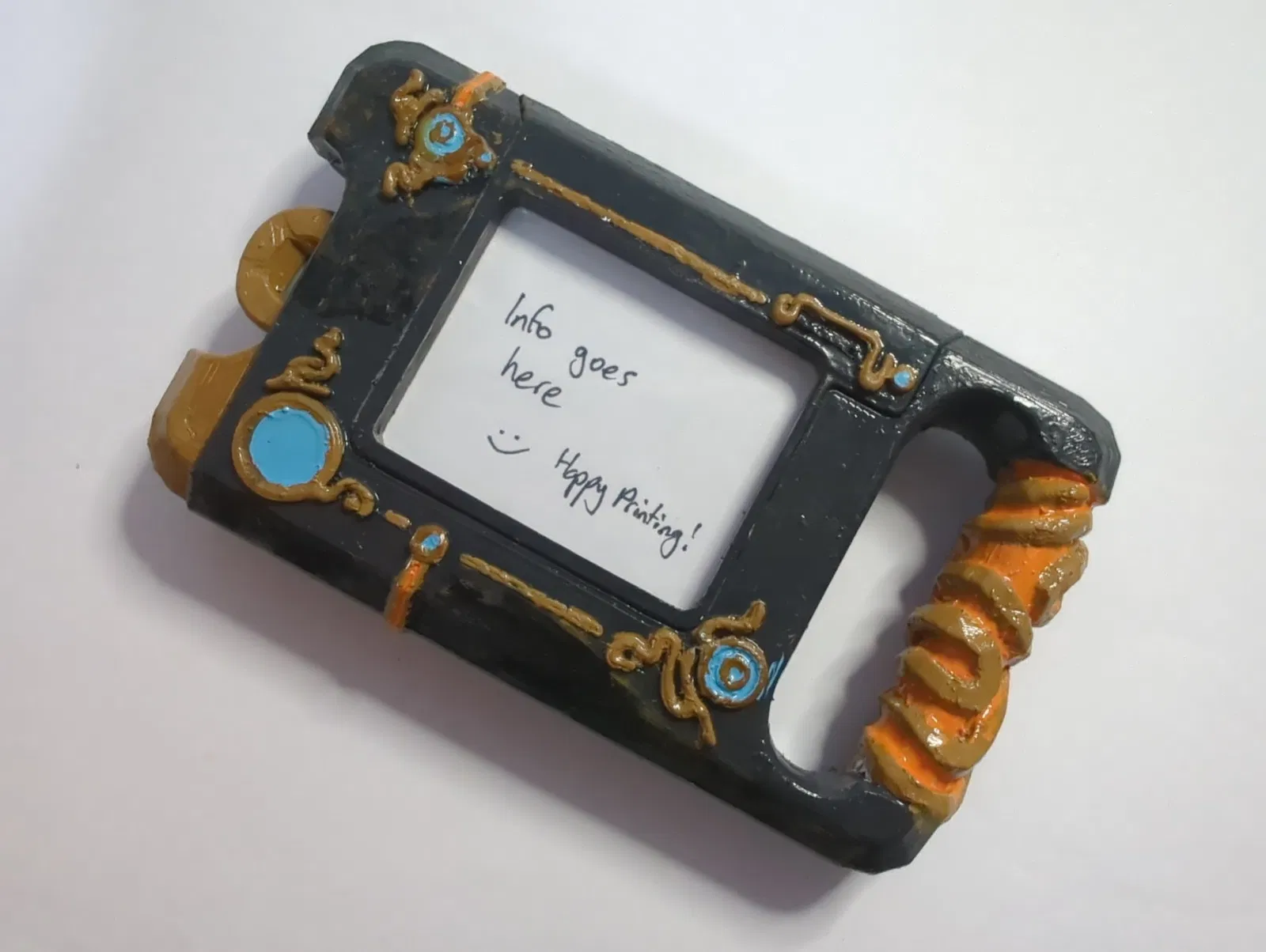 Một thẻ túi có hình dạng giống như slate sheikah từ botw