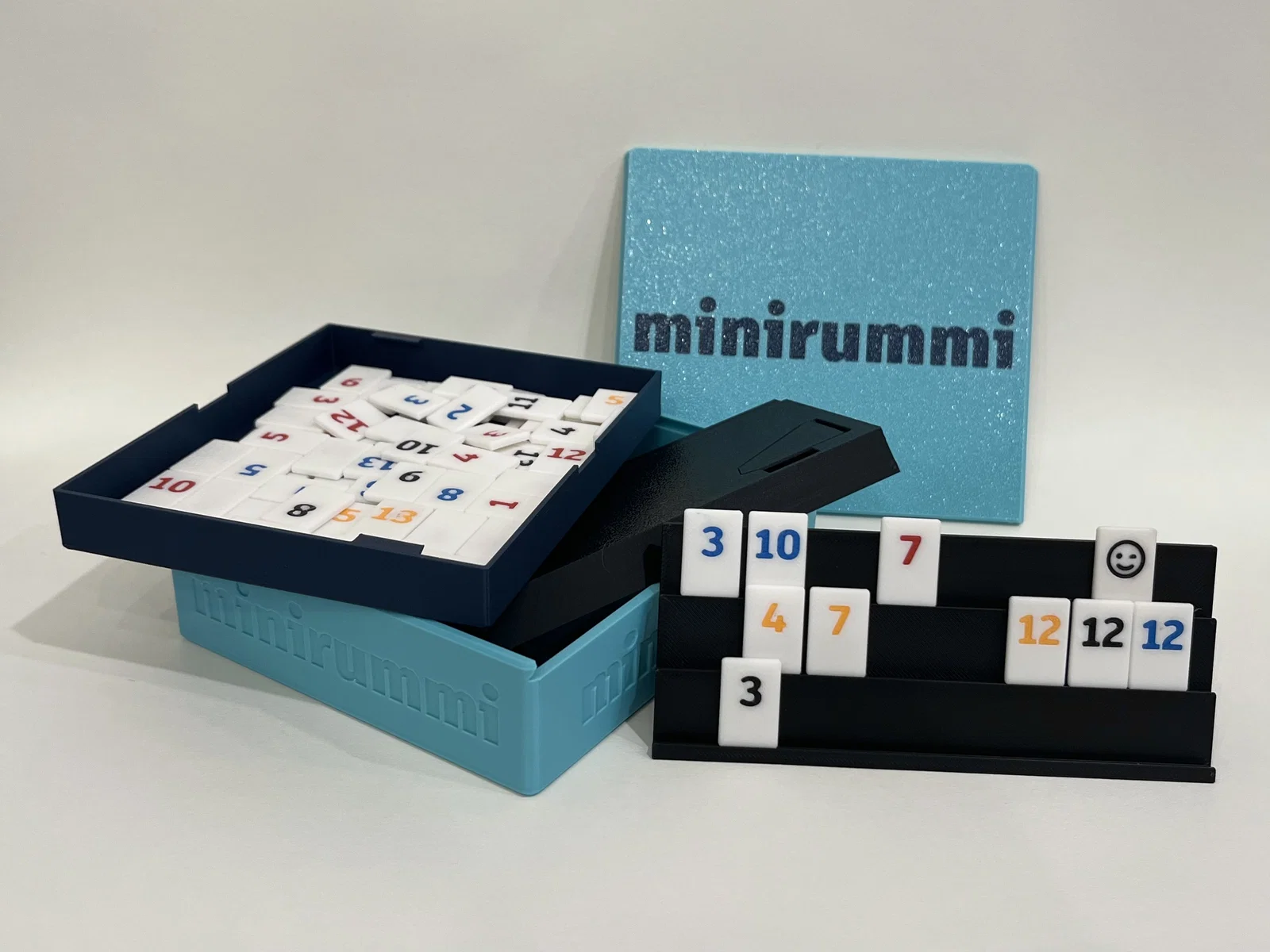 minirummi là phiên bản thu nhỏ, siêu gọn nhẹ của trò chơi xếp gạch Rummikub kinh điển. Trong Rummikub, người chơi cần tính toán chiến thuật để xếp các quân bài có số thành các nhóm hoặc chuỗi, mục tiêu là người đầu tiên đánh hết bài trên tay. Bộ trò chơi du lịch này bao gồm 106 quân bài phiên bản mini, khay đựng bài, 4 kệ xếp bài có thể gấp gọn và một chiếc hộp để chứa tất cả các món.