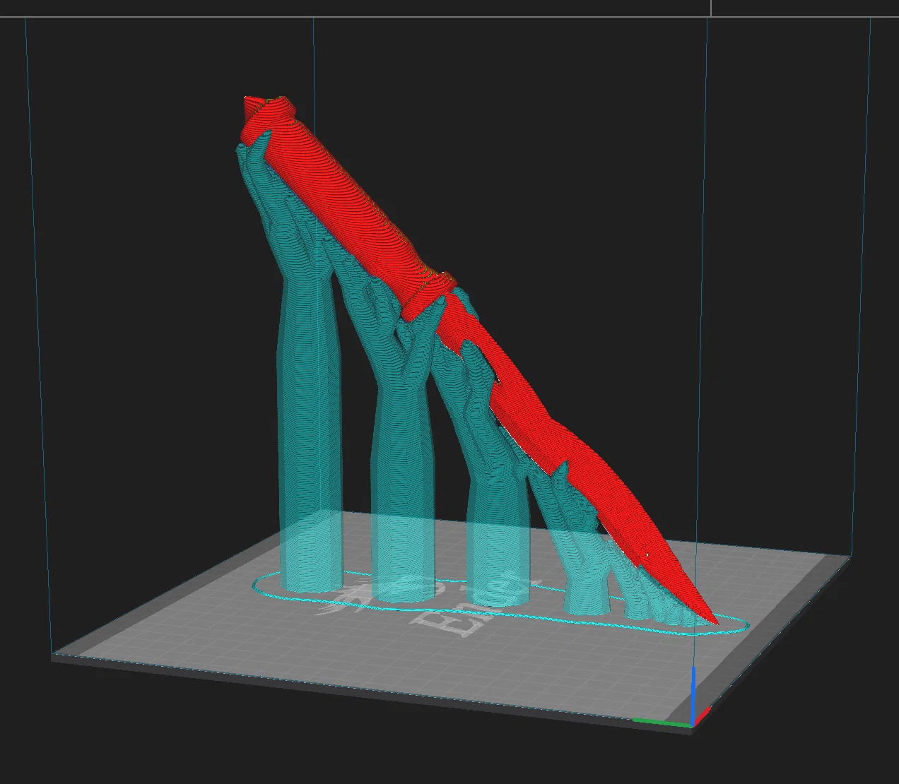 - Thiết lập Support: Hãy sử dụng chế độ support "Tree" hoặc "Normal" tùy theo thói quen của bạn, đảm bảo các phần nhô ra được nâng đỡ kỹ càng vì mô hình có chiều dài đáng kể.