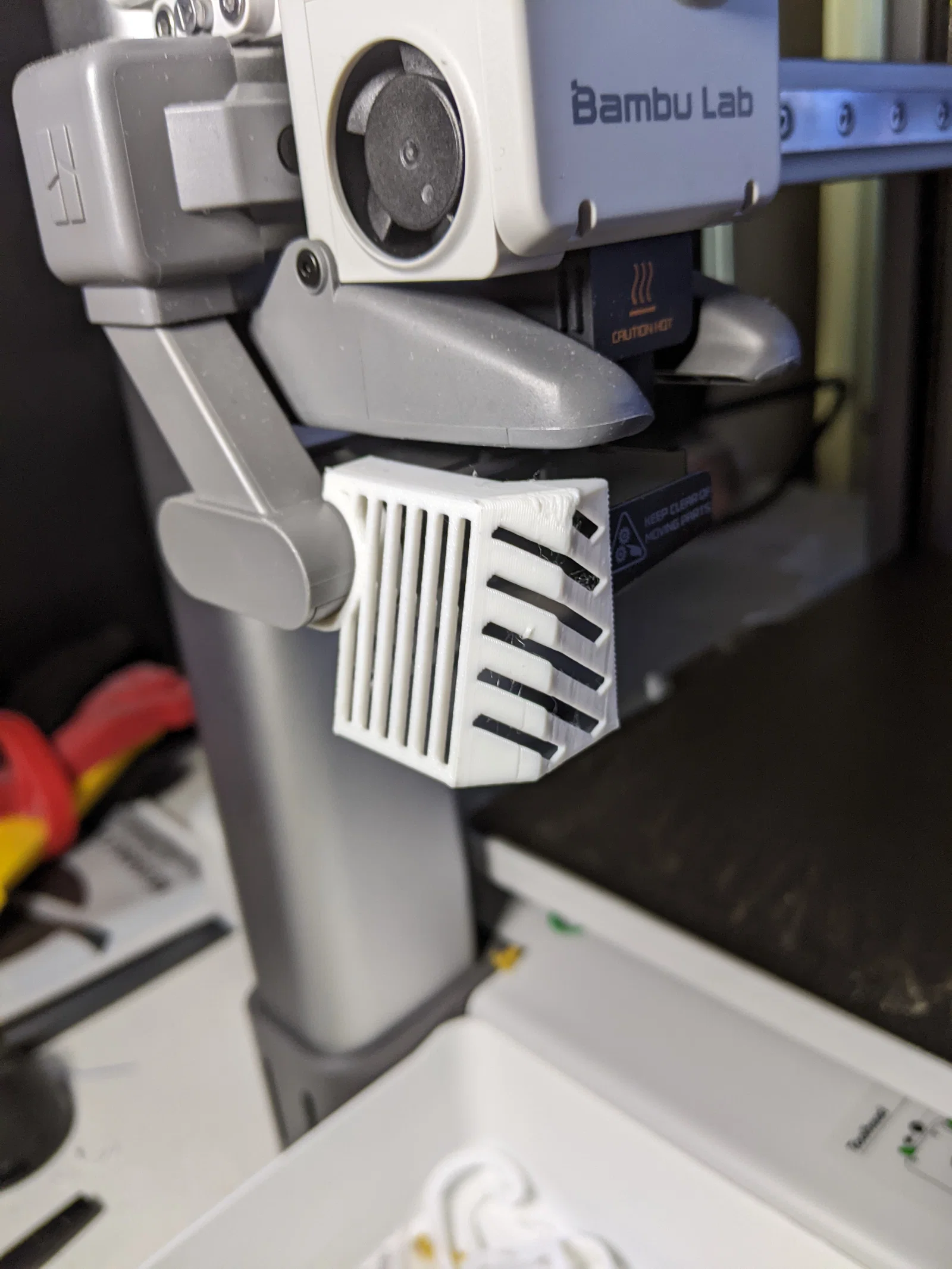 Việc lắp đặt phụ kiện này khá dễ dàng và không cần phải tháo rời các bộ phận quan trọng của đầu in. Khi sử dụng, nó đóng vai trò như một "cái phễu" chắn gió và gom nhựa, đảm bảo dòng nhựa thừa đi đúng hướng vào khay chứa bên dưới. Đây là một bản mod nhỏ nhưng rất hữu ích, giúp tối ưu hóa hiệu suất làm việc cho dòng máy in A1 yêu quý của bạn.