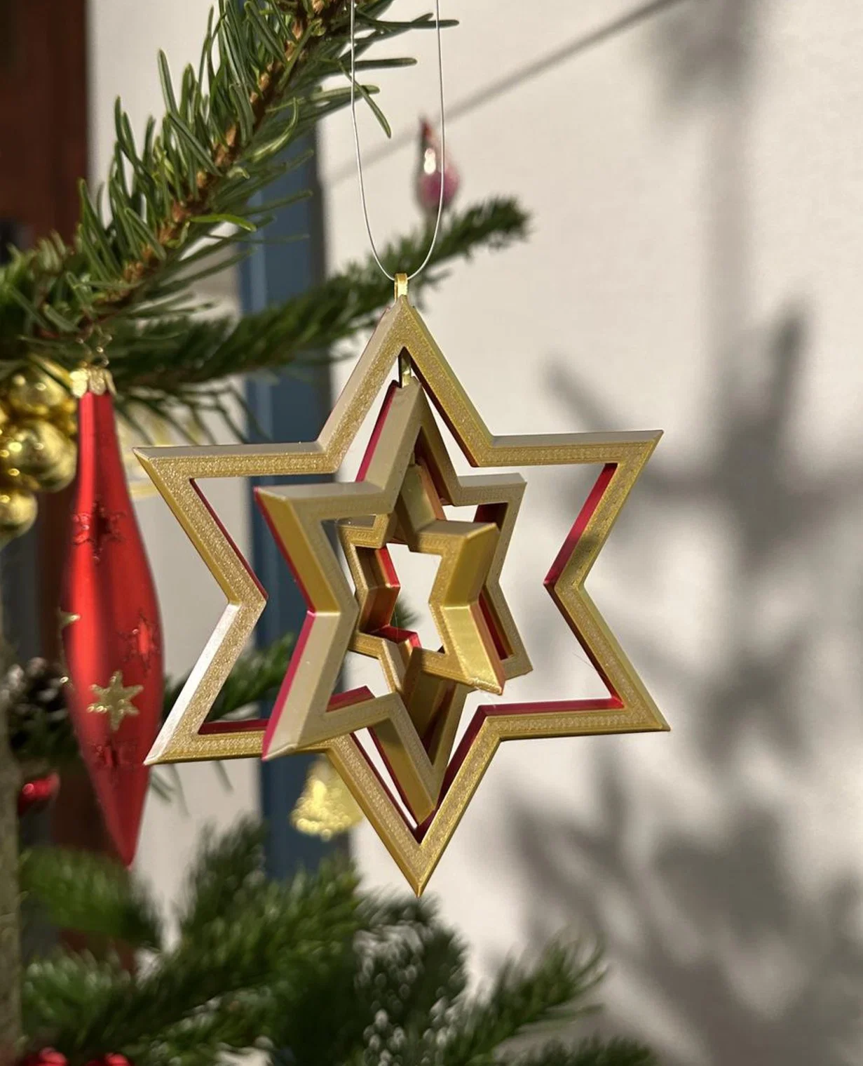 Mô hình ngôi sao Giáng sinh lồng nhau, có thể xoay độc đáo. Sản phẩm có đường kính 100mm, độ dày 8mm, là vật phẩm trang trí tinh tế cho mùa lễ hội của bạn.