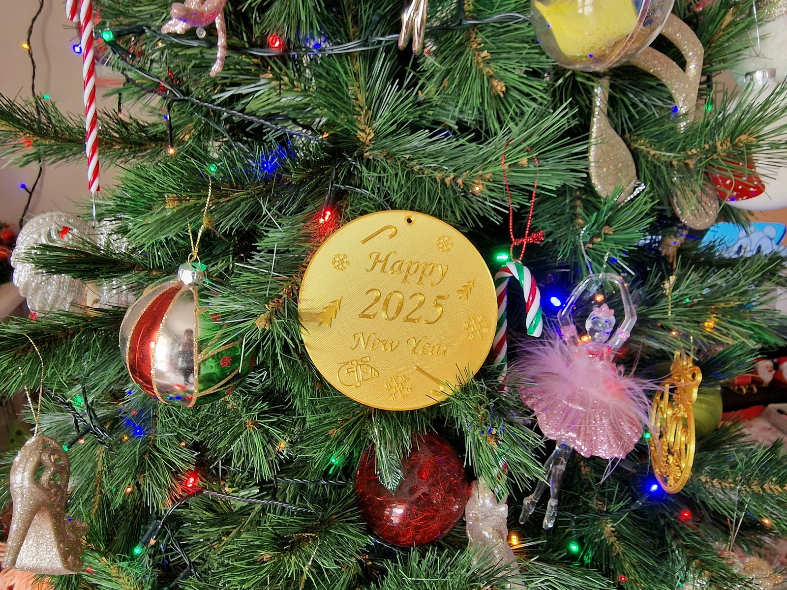 Mẫu trang trí hình tròn chào đón năm mới 2025 tuyệt đẹp cho cây thông Noel của bạn. Sản phẩm được thiết kế trên Tinkercad, khuyến khích in bằng kỹ thuật variable layer height hoặc lớp 0.1mm để có bề mặt sắc nét và mịn màng nhất.