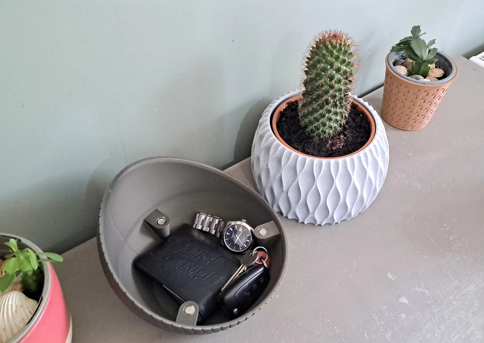 Mình thiết kế chậu cây này với một ngăn bí mật để cất giữ những món đồ quý giá. Mẫu in cực kỳ đơn giản, không cần support và sử dụng 6 viên nam châm Ø8mm để giữ các bộ phận với nhau. Mời các bạn tải về in thử và khoe thành quả nhé!