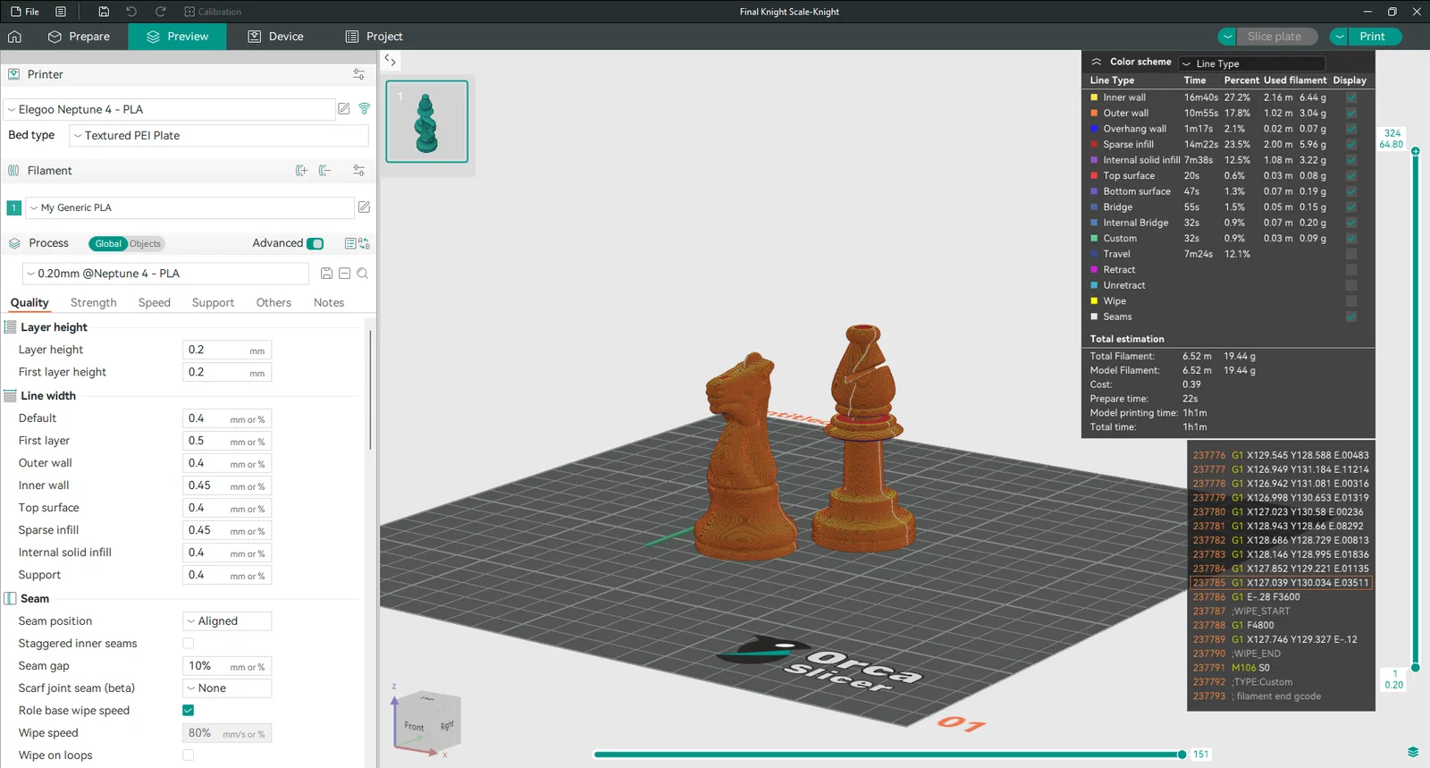Tất cả các quân cờ đều là dạng print-in-place (in trực tiếp không cần lắp ráp). Nếu muốn, bạn có thể thêm support dưới cằm của quân Mã để nhìn đẹp mắt hơn, nhưng không bắt buộc. Tuy nhiên, nếu máy in của bạn gặp khó khăn với các phần overhang, mình khuyên bạn nên dùng support.
