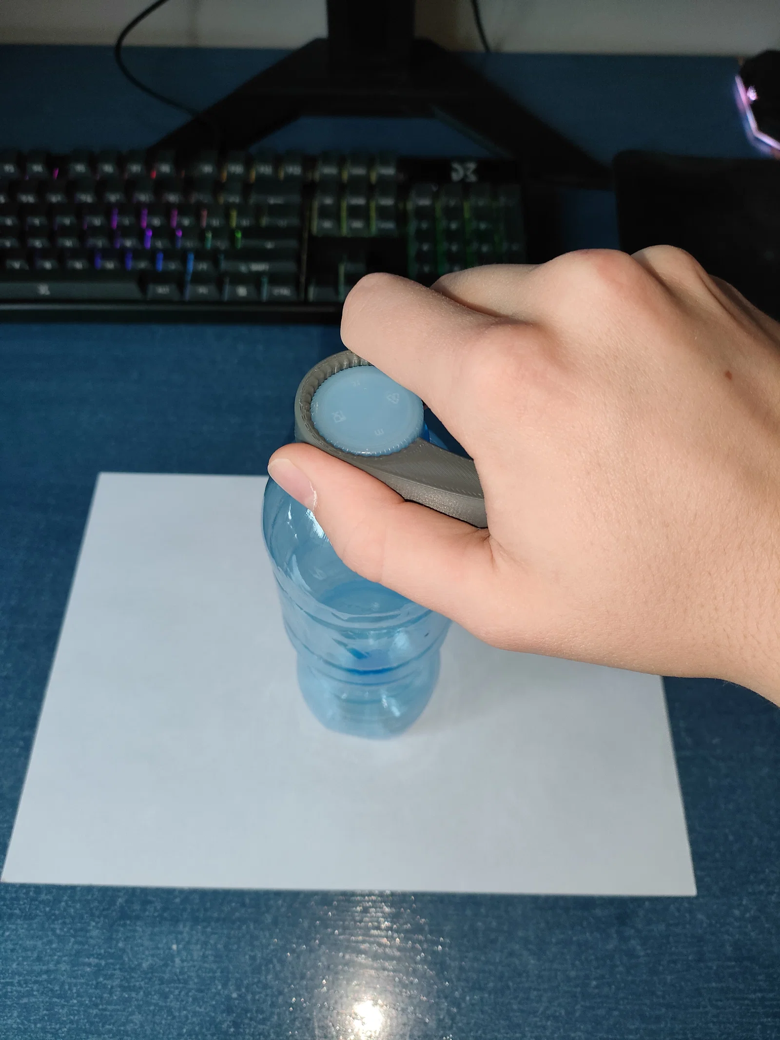 Mình đã thiết kế chiếc dụng cụ mở chai đơn giản này để giúp việc mở nắp chai nhựa trở nên dễ dàng hơn. Kích thước nắp tối đa mà dụng cụ này có thể xử lý là 33mm (tương đương 1.3 inch), đủ để mở hầu hết các loại chai nước suối hoặc nước ngọt thông thường.