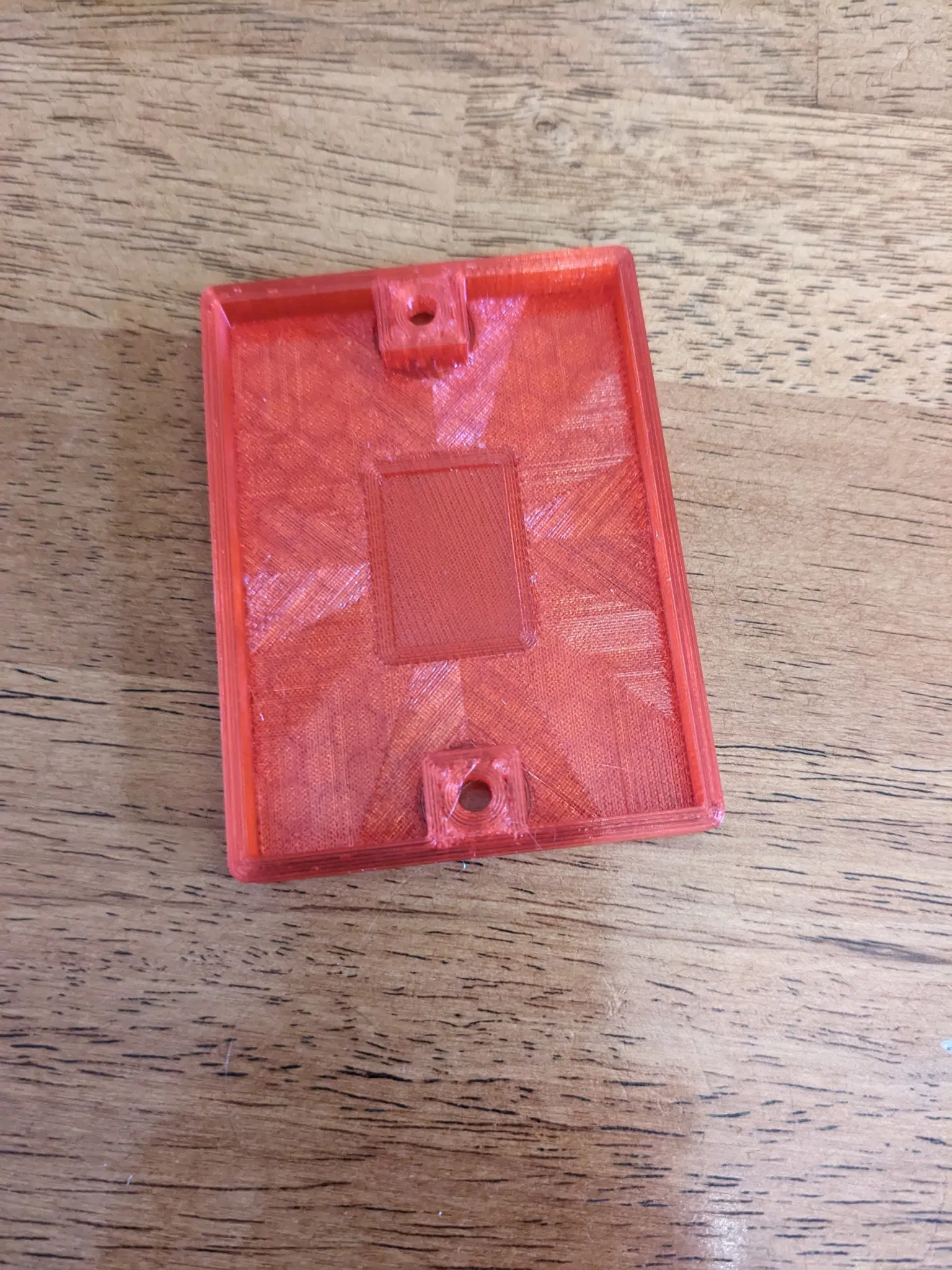 Sử dụng filament đỏ trong suốt, và đảm bảo bạn có một lớp đầu tiên tốt trên một bề mặt mịn. Tôi đã sử dụng PETG, nhưng không đạt được lớp đầu tiên tuyệt vời - điều này rất rõ ràng trong những bức ảnh của tôi. Tuy nhiên, hình dạng và một lớp đầu tiên được điều chỉnh đúng có thể giúp bạn có được một nắp đèn bên bóng loáng.