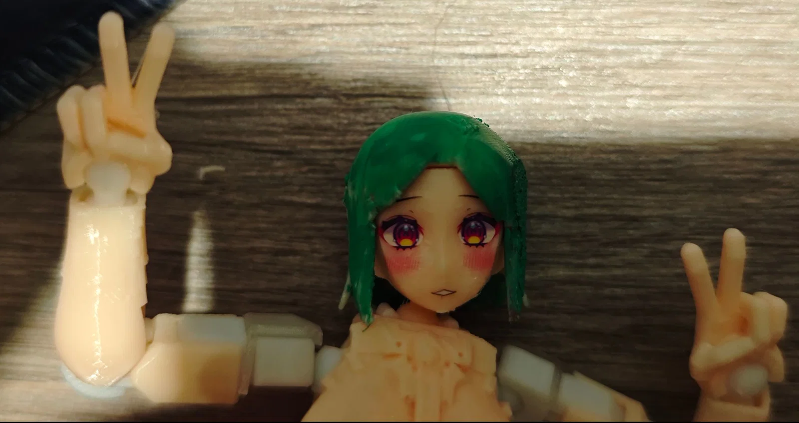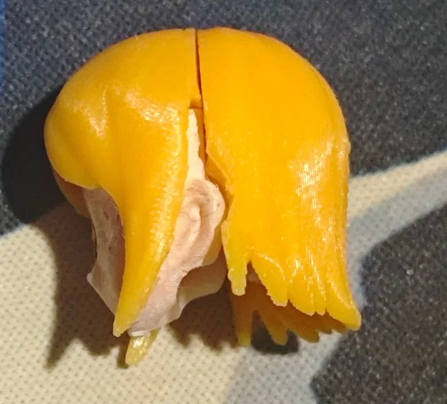 Mình đã in thử tất cả các mẫu bằng nhựa PETG. Phần mặt và tóc lắp vào nhau rất vừa, gần như không thấy khe hở mà không cần dùng keo.