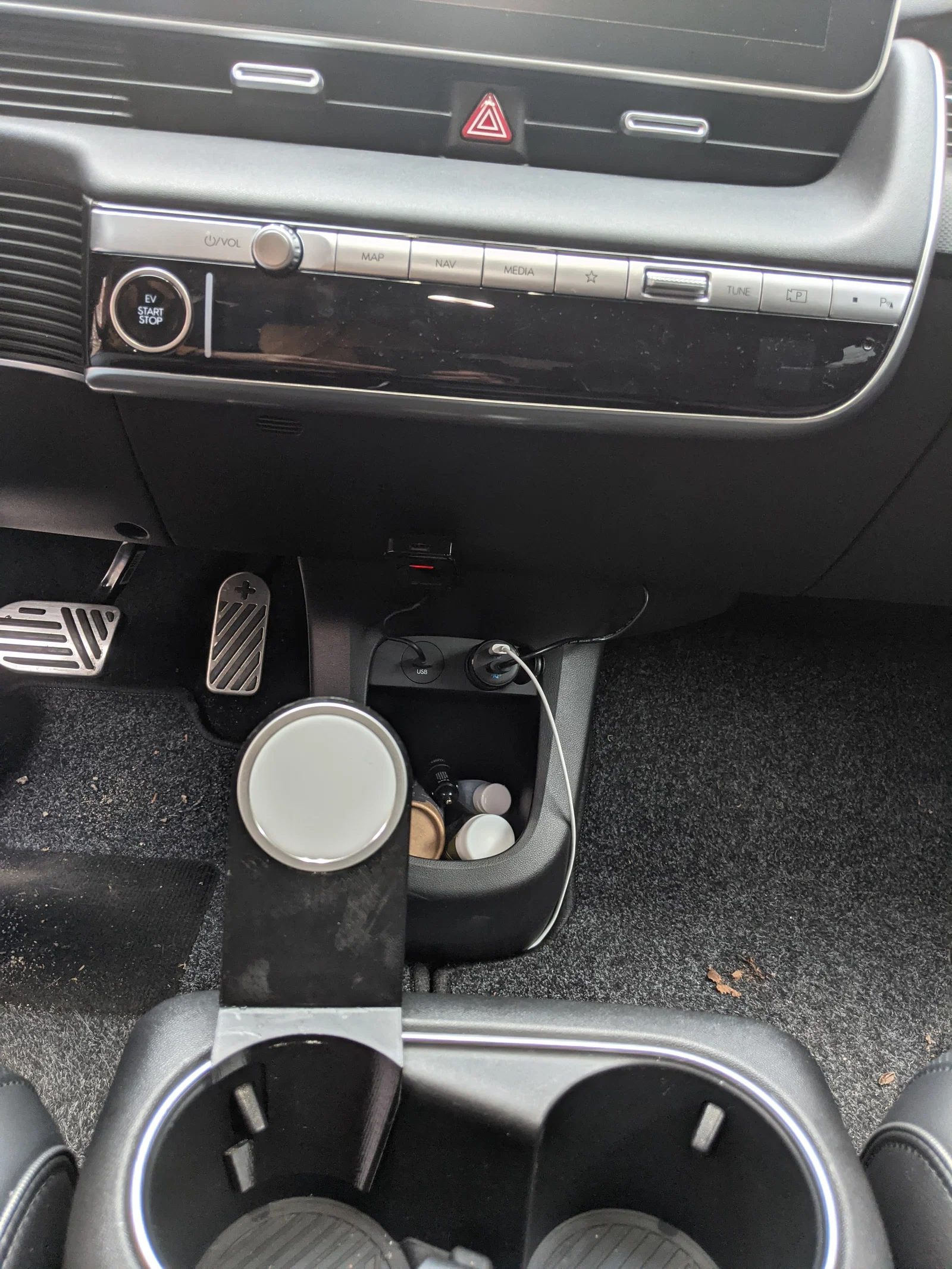 Thú thật là sạc không dây trên con Ioniq 5 chán quá nên mình đã tự thiết kế/remix lại cái giá đỡ MagSafe cho khu vực hốc để chai nước ở bệ điều khiển trung tâm.