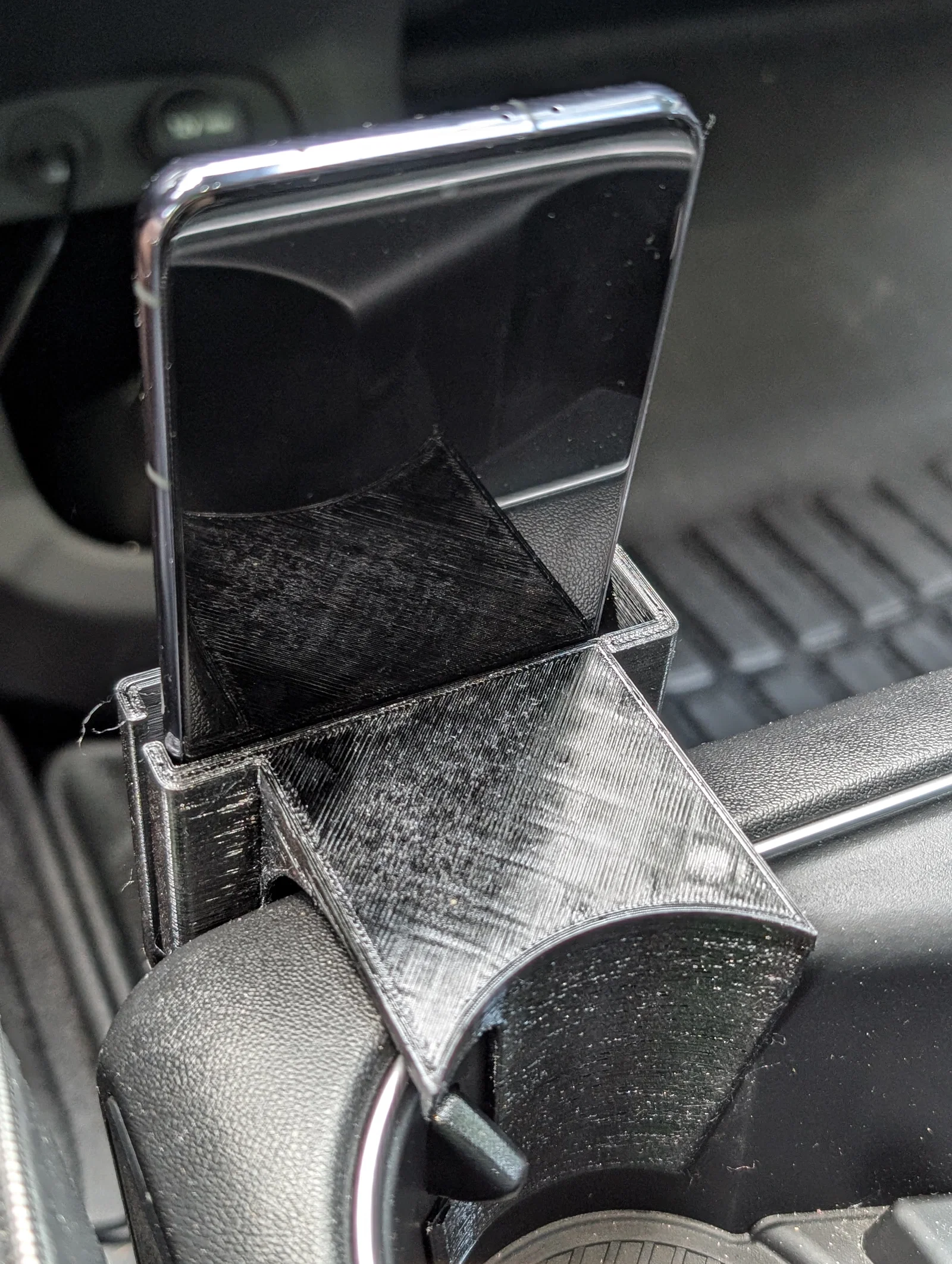 Mẫu giá đỡ điện thoại thiết kế riêng cho khay để cốc trên dòng xe Hyundai IONIQ 5 (2022-2024). Sản phẩm nên được in bằng nhựa chịu nhiệt PETG để đảm bảo độ bền tốt nhất khi sử dụng trong không gian nội thất ô tô.