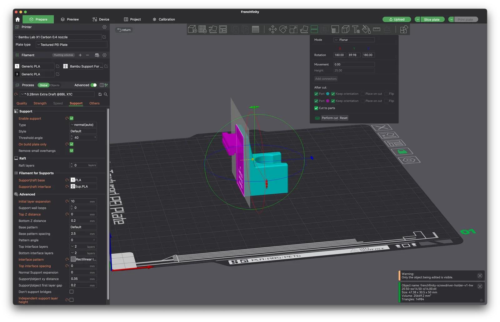 Mẫu này trên nền tảng hiện đã ngừng hỗ trợ. Các bạn vui lòng ghé qua MakerWorld để sử dụng phiên bản tùy chỉnh đầy đủ trực tiếp trên trình duyệt tại đây: https://makerworld.com/en/models/861632-french-plate-french-cleat-frenchfinity