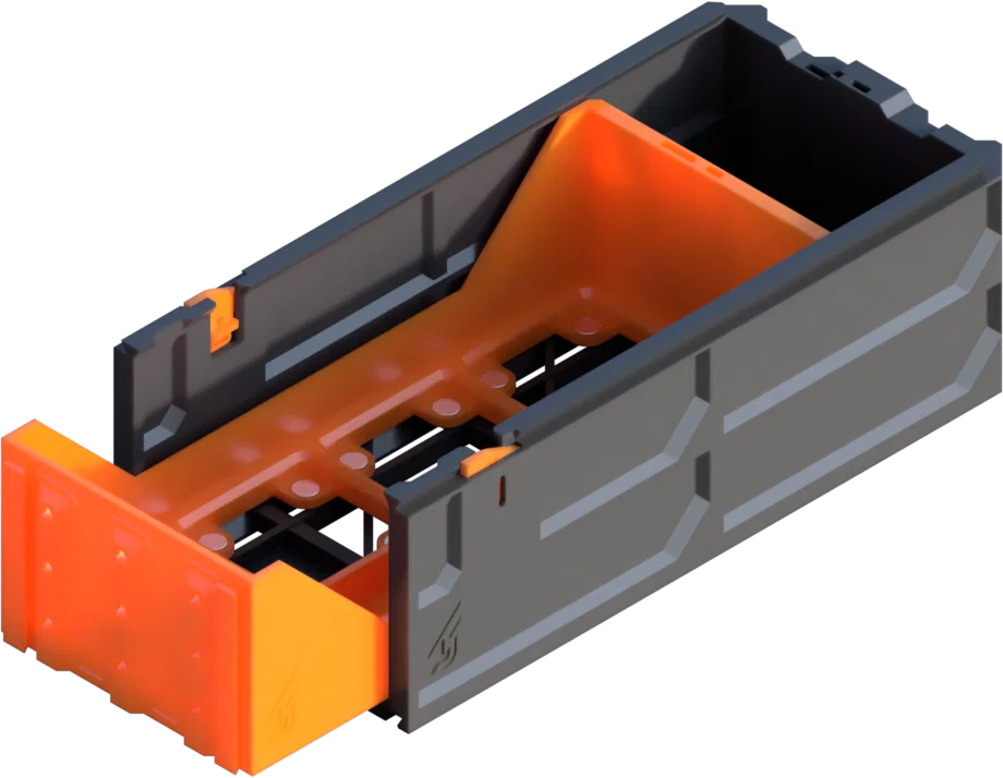 Ngăn kéo đơn Gridfinity GEN2 Decor phiên bản chiều dài tiêu chuẩn (STANDARD) với các khe cắm nam châm. Hệ thống mô-đun này cho phép bạn dễ dàng tùy chỉnh mặt trước và tay nắm để tối ưu hóa không gian lưu trữ cá nhân.