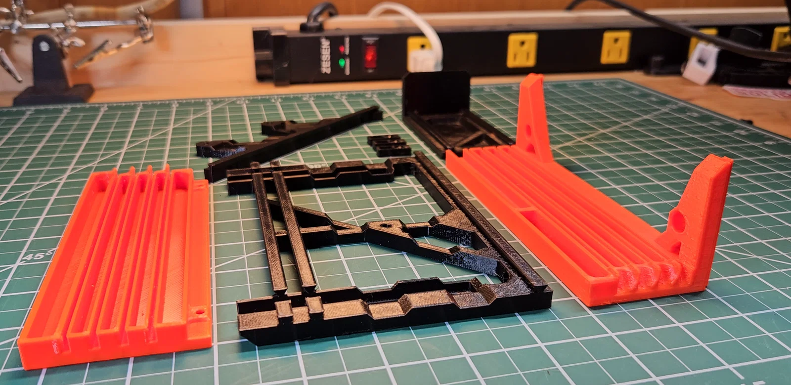 PHẦN CỨNG • Tuốc nơ vít • Vít gỗ đầu chìm: (Hệ mét: 4x25mm đến 4x16mm) hoặc (Hệ SAE: #6 hoặc #8 dài tối đa 1 inch) • Mũi khoan có đường kính nhỏ hơn vít gỗ • Bút, bút đánh dấu hoặc dụng cụ vạch dấu • Nam châm (Tùy chọn): 10x5x2mm hoặc 10x2mm • Đai ốc M3 • Vít M3 loại M3x8 - M3x10