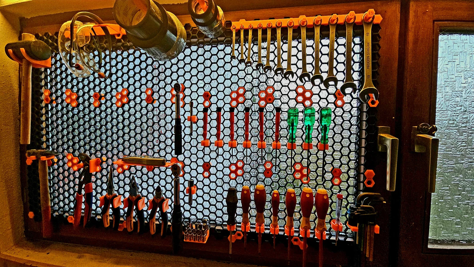 Móc treo cờ lê đơn giản cho bảng Honeycomb Storage Wall (HSW). Được thiết kế để giữ chặt các loại cờ lê có kích thước từ 6-19. Các vị trí giữ hình lục giác được sắp xếp rất tinh tế để hai file khớp với nhau một cách mượt mà khi đặt cạnh nhau trên bảng HSW.