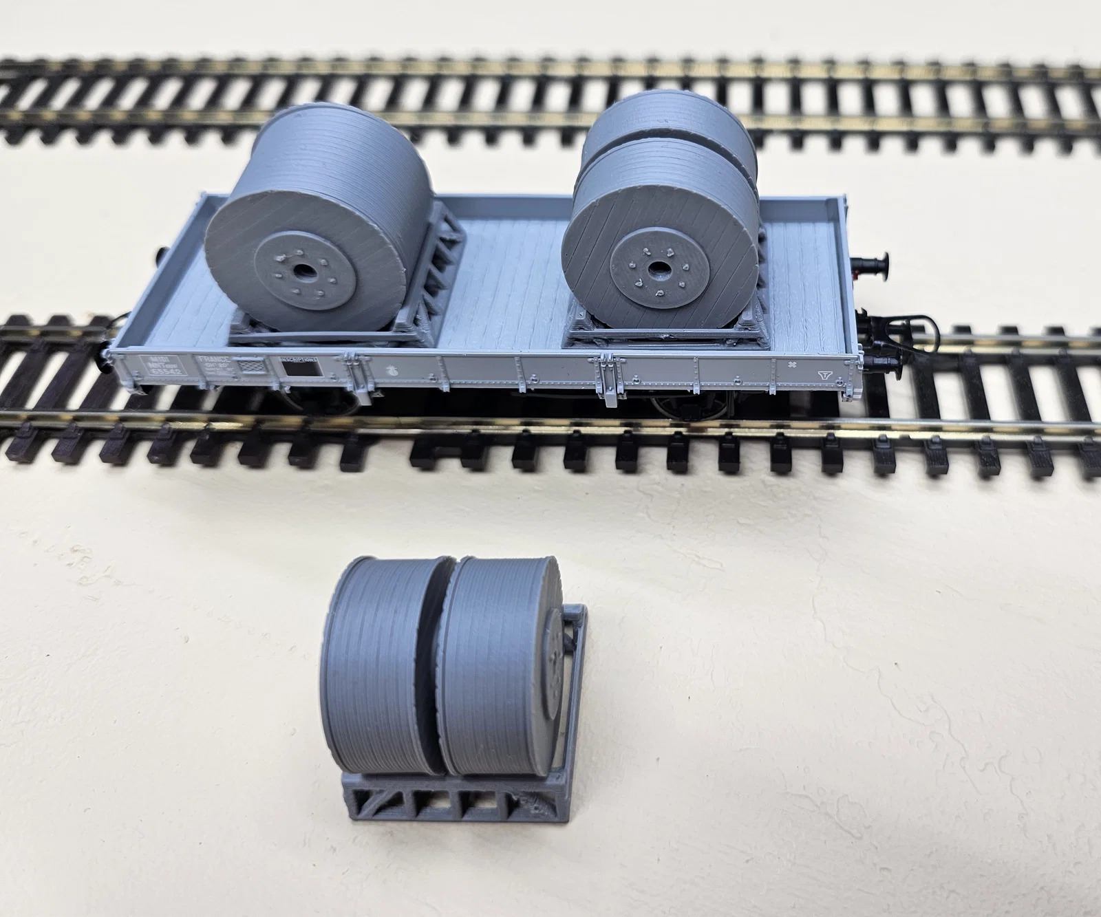 Mẫu mô hình này được thiết kế để lắp đặt các cuộn dây điện cao thế hoặc cáp quang trên toa tàu phẳng, hoặc dùng làm vật trang trí cho tiểu cảnh công nghiệp ở tỷ lệ 1/87.