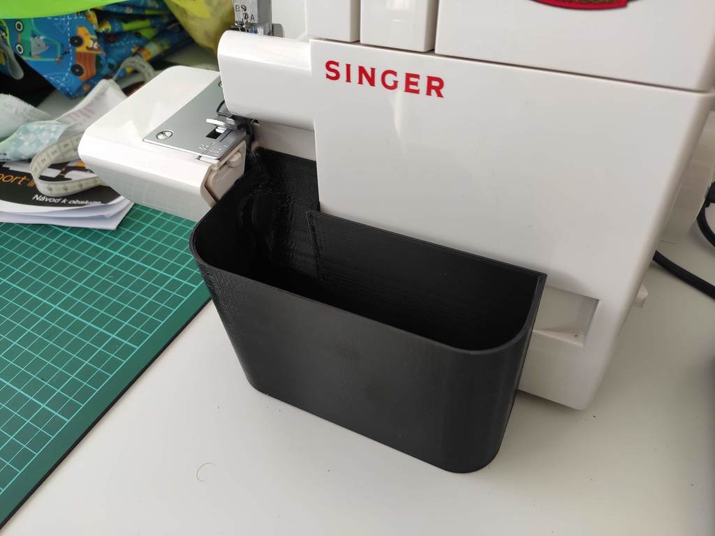 Khay đựng vụn vải tiện dụng cho dòng máy vắt sổ Singer 14SH754 và các dòng máy tương đương. Thiết kế tối ưu cho đầu phun 0.6mm, giúp hứng vụn vải và bụi hiệu quả. Sản phẩm đã được in thử nghiệm nhiều lần để đảm bảo độ chính xác và độ bền.