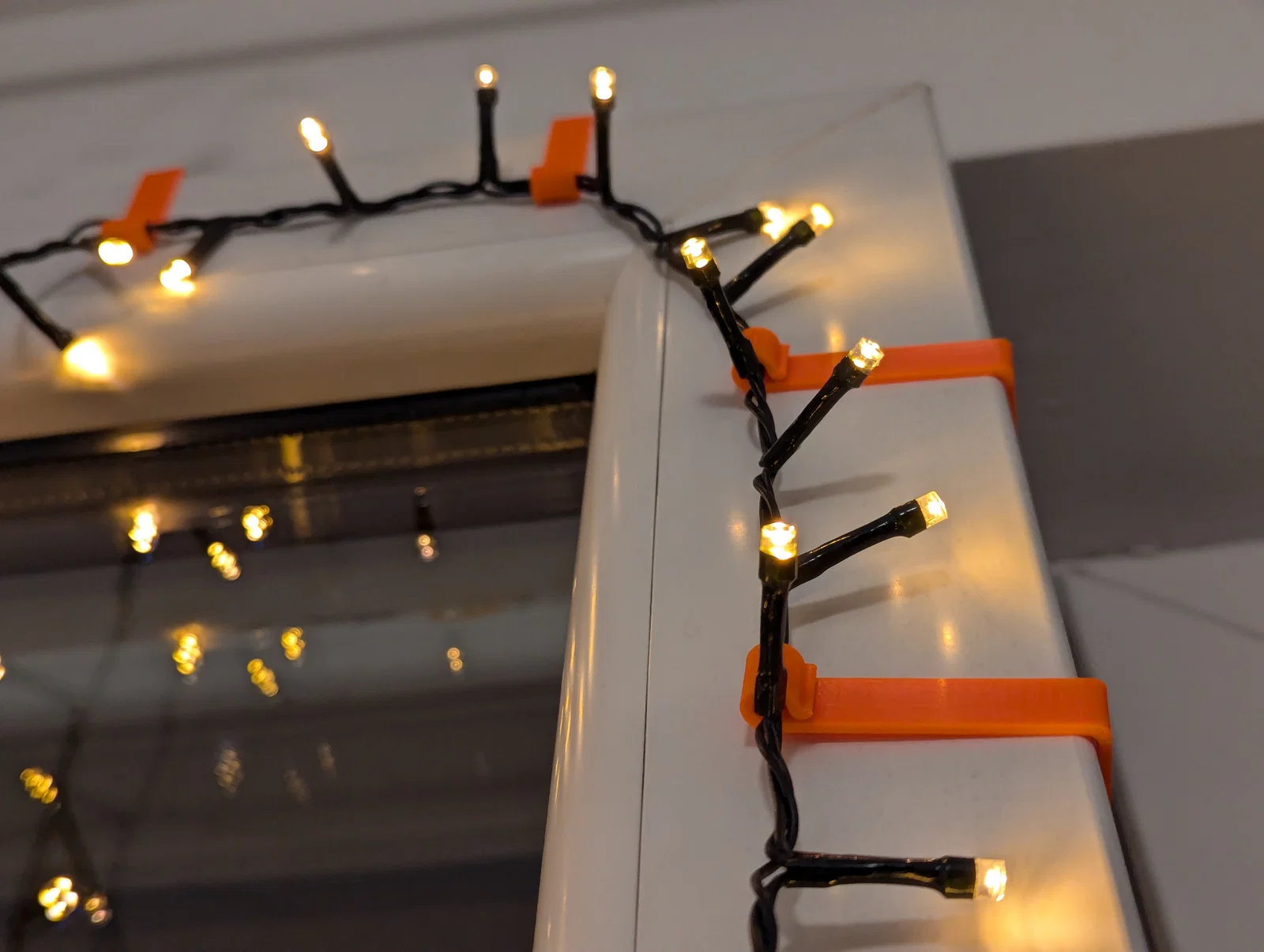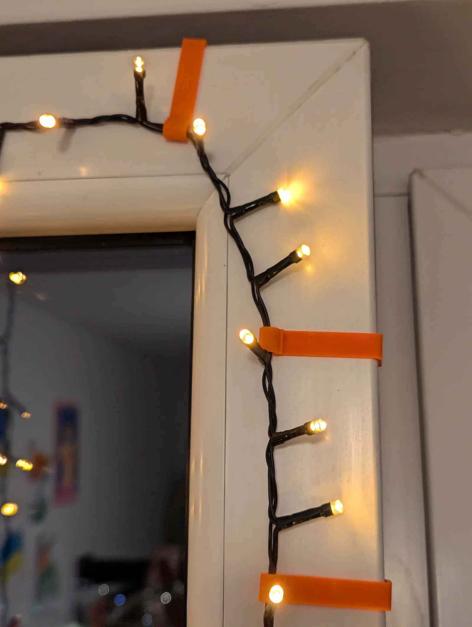 Phụ kiện đơn giản nhưng cực kỳ hữu ích giúp bạn treo đèn hoặc vật dụng trang trí lên cửa sổ/cửa ra vào mà không cần dùng đến băng keo. Mỗi chiếc móc chỉ tốn 7 phút để in, rất nhanh chóng và tiện lợi cho việc trang trí nhà cửa.