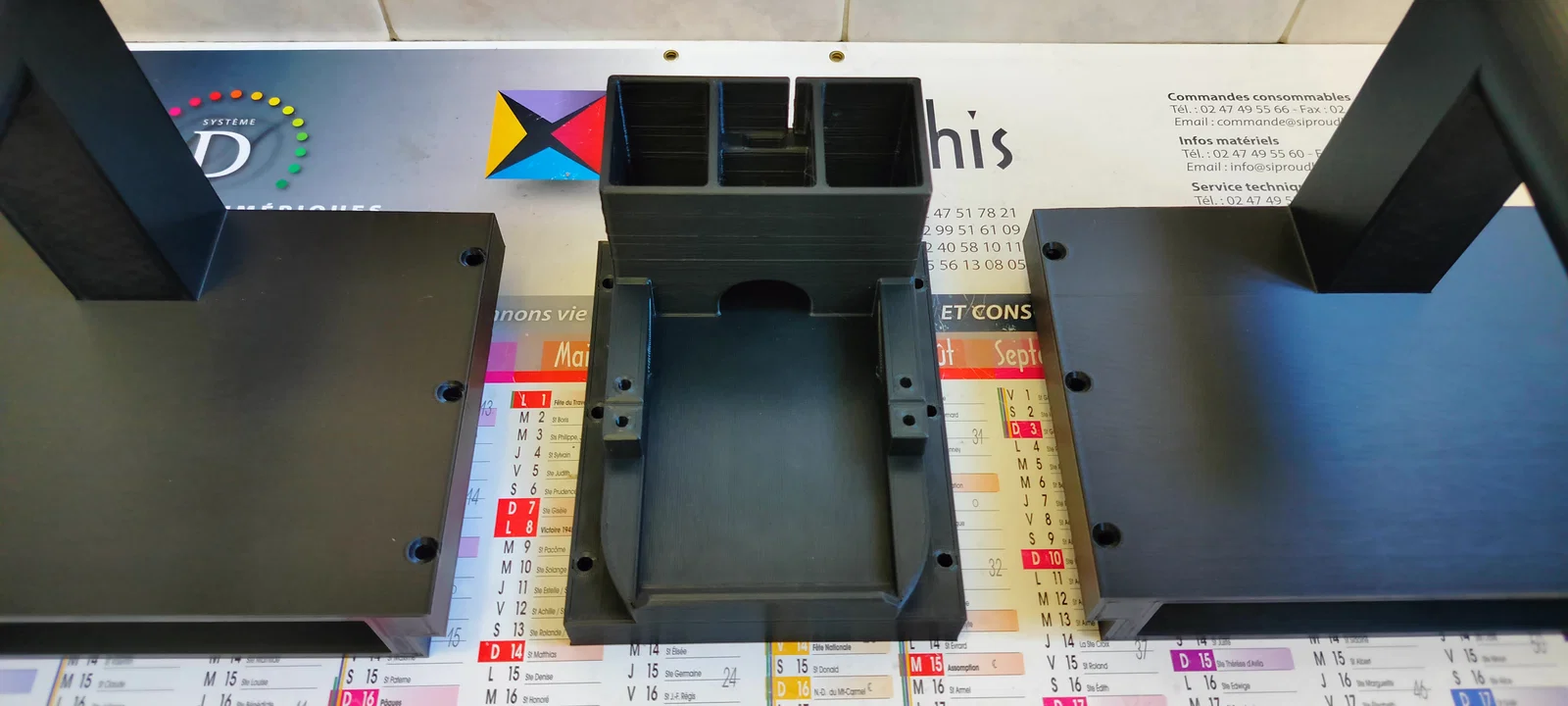 Phần đế của FC01 đã được chỉnh sửa bằng 3D Builder để ghép bộ phận Organizer vào. Toàn bộ thiết kế này đã được làm lại trong Blender. Phần đế được điều chỉnh để có thể gắn thêm các bộ giữ cuộn nhựa.