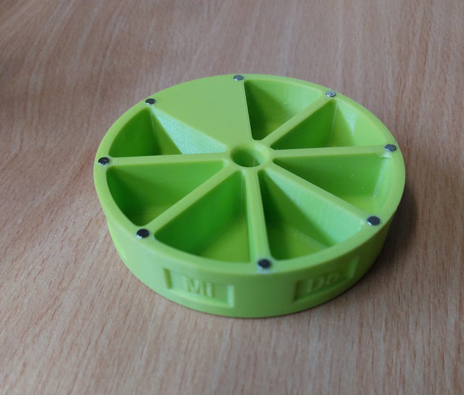 Hộp đựng thuốc chia theo ngày trong tuần, mỗi ngày một ngăn riêng biệt. Hộp có đường kính 80mm và chiều cao 21mm. Hộp sử dụng nam châm kích thước 3x2mm (https://www.amazon.de/dp/B00TACKU0O). Hộp được trang bị nam châm toàn bộ; phần nắp tôi đã thử nghiệm lắp từ 2 đến 4 viên nam châm tùy vào độ hít mà bạn mong muốn. Để sử dụng tiện lợi hơn, tôi đã bổ sung thêm một mẫu nắp thứ hai có thêm các rãnh cầm tay. #LƯU Ý: NHẤT ĐỊNH PHẢI CHÚ Ý ĐẾN CỰC TÍNH CỦA NAM CHÂM KHI LẮP ĐẶT#