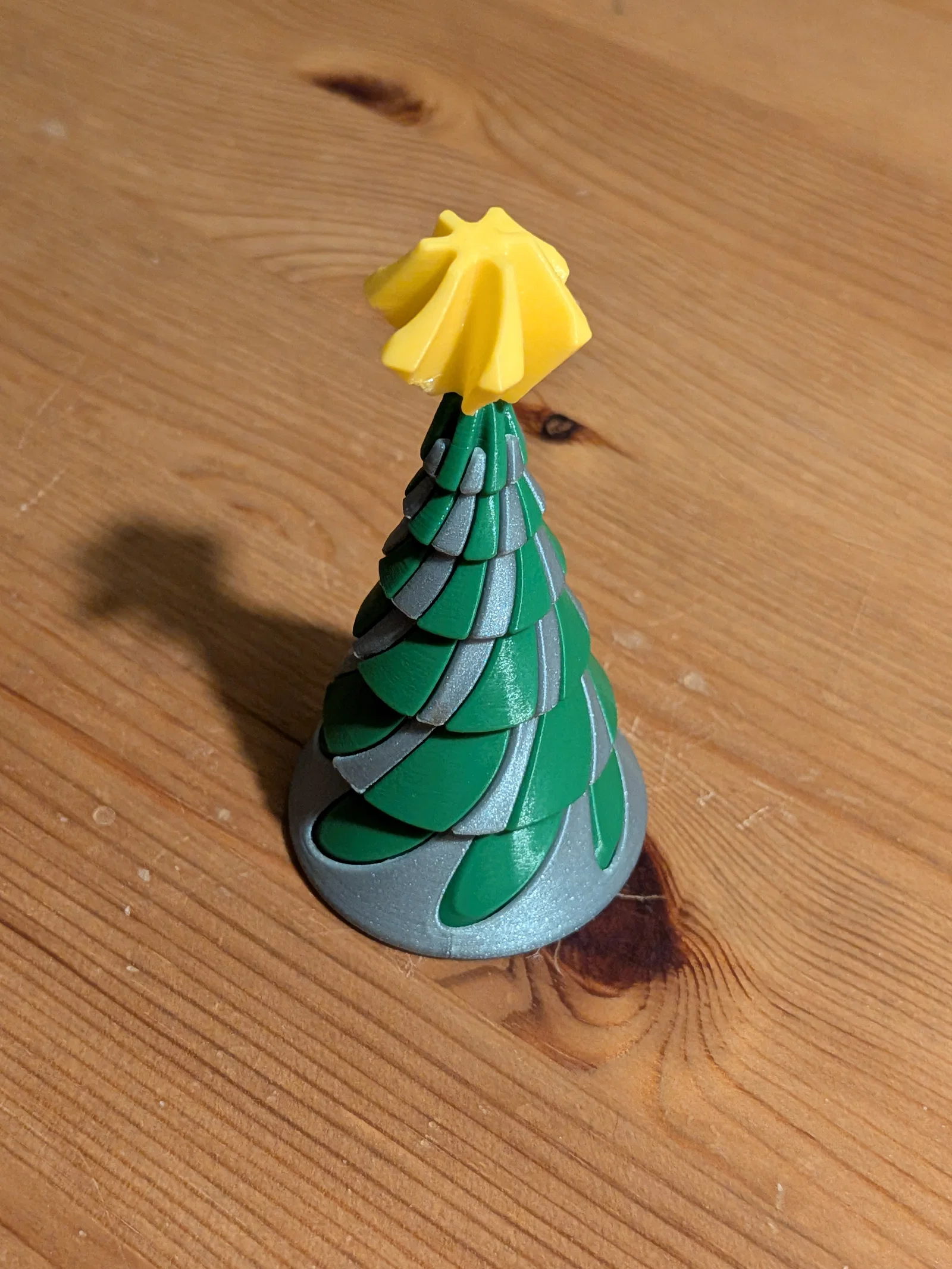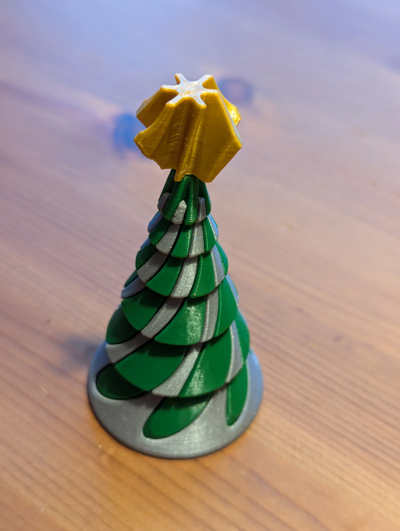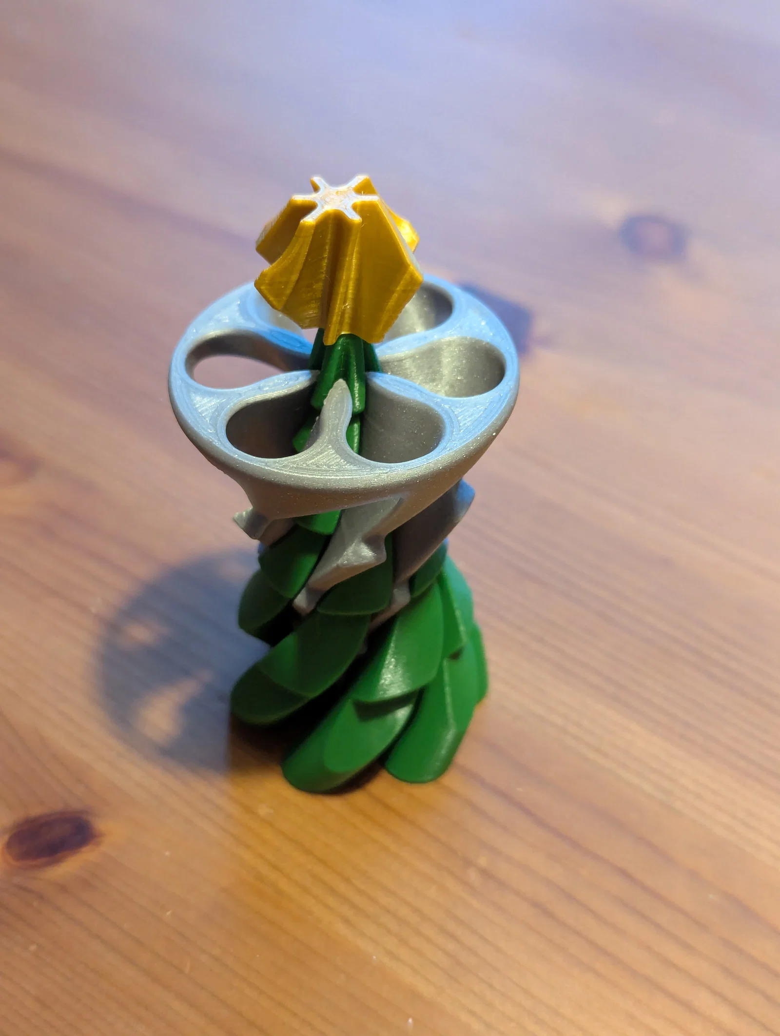 Mẫu fidget đồ chơi kiểu xoáy pass-through hình nón mà tôi in cách đây một thời gian đã làm tôi liên tưởng đến cây thông Noel. Nó chỉ cần thêm một ngôi sao trên đỉnh và vài chỉnh sửa về hình dáng là xong. Cảm thấy có hứng thú, tôi mở phần mềm Fusion lên và thế là tác phẩm này ra đời.