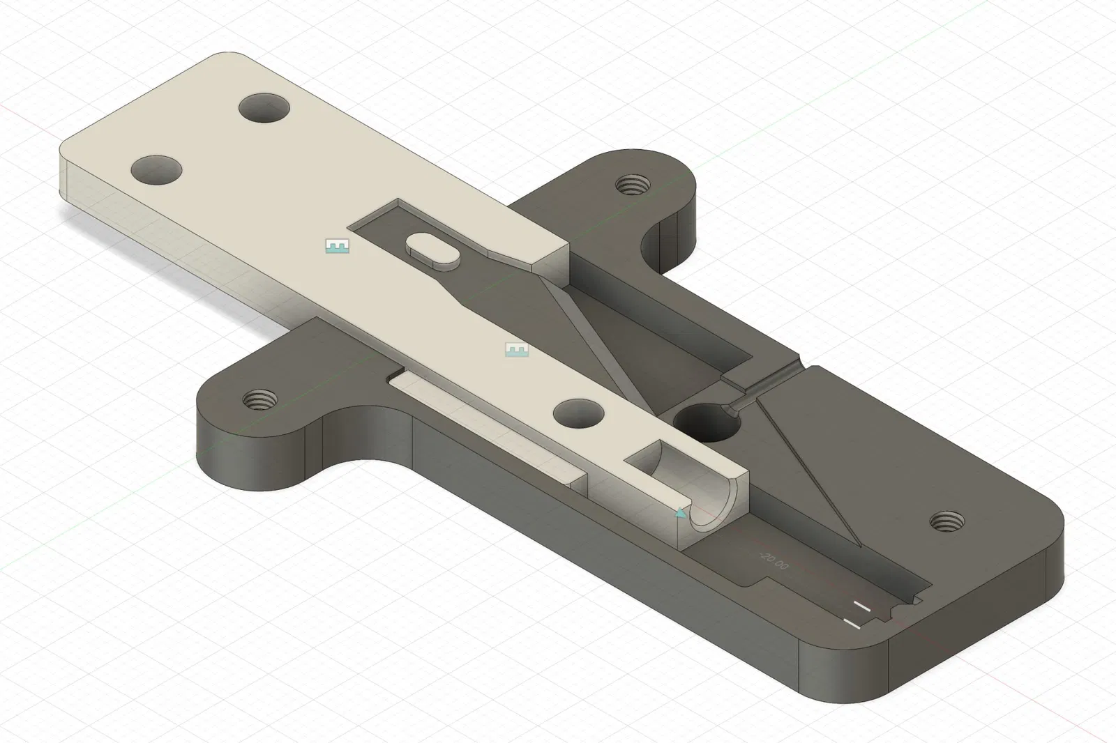 - Gắn phần trên của thân với 3x ốc vít SCHS M3x6mm. Nếu giá đỡ lưỡi dao bị khóa chặt, nới lỏng ốc vít một chút cho đến khi nó di chuyển tự do.