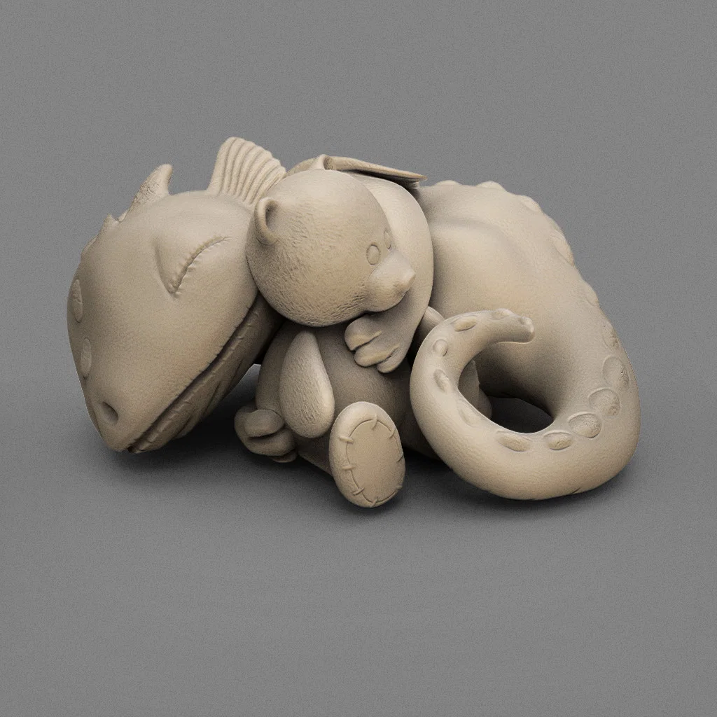 Một chú rồng nhỏ đang chìm vào giấc ngủ cùng với chú gấu bông của mình. Mô hình này được điêu khắc tỉ mỉ, rất thích hợp cho những ai yêu thích các thiết kế nhân vật dễ thương và đầy cảm xúc.