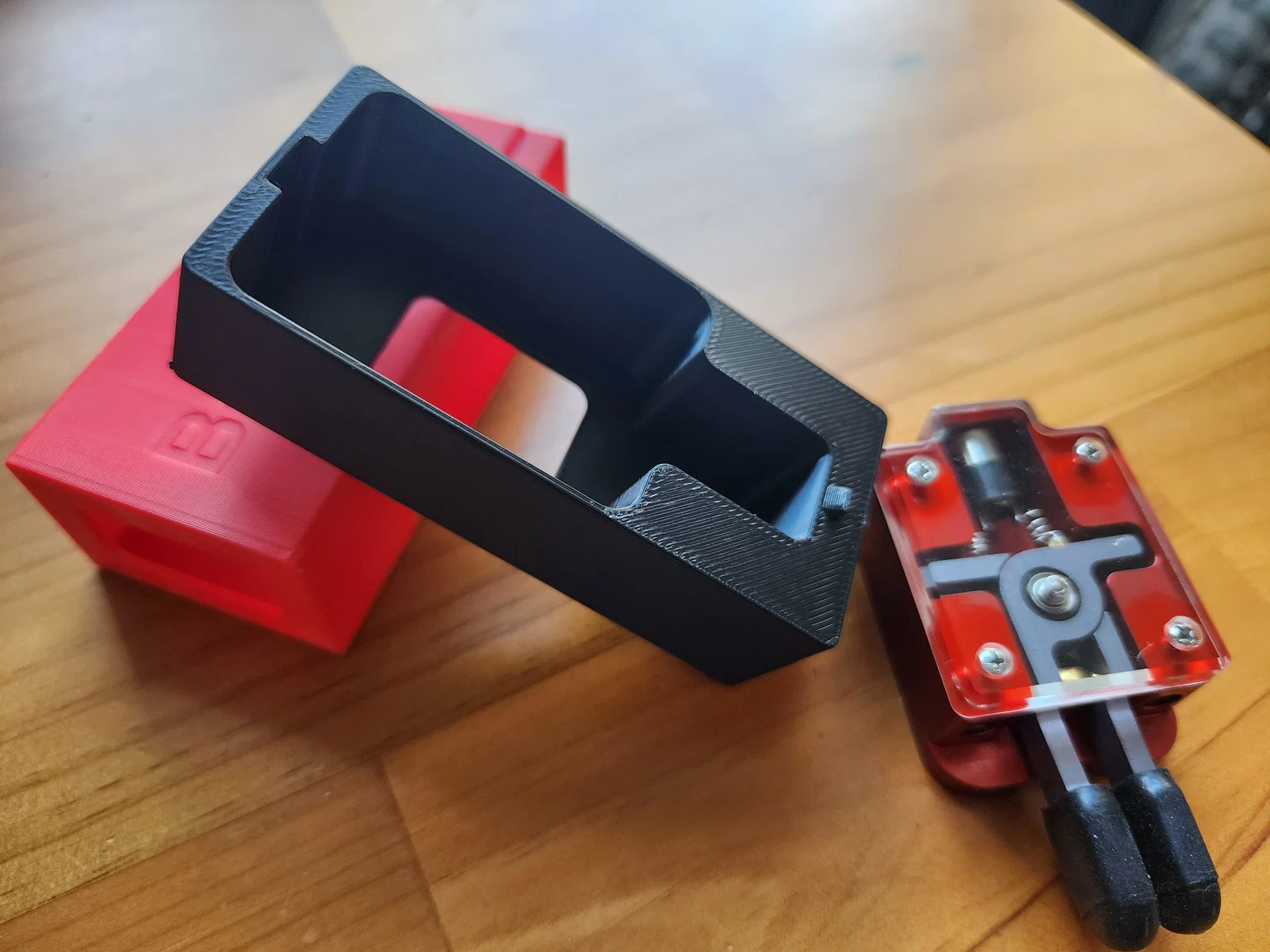 Mẫu đế giữ và bảo vệ nhỏ gọn, tiện lợi cho thiết bị BaMaKey TP-iii của bạn. Thiết kế dạng trượt như hộp quẹt, có lẫy cài an toàn và lỗ khoét thông minh giúp bảo quản khóa Morse an toàn trong túi xách. In dễ dàng bằng nhựa PETG, không cần support.