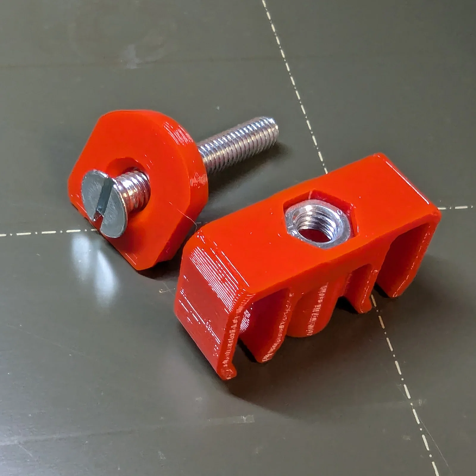 Bạn sẽ cần một bộ ốc và bu lông M5 để cố định hai bộ phận này lại với nhau. Khi đã đặt vật liệu vào vị trí, bạn chỉ cần dùng tua vít siết chặt ốc lại, đảm bảo vật liệu sẽ được giữ cố định, không còn bị xê dịch nữa.
