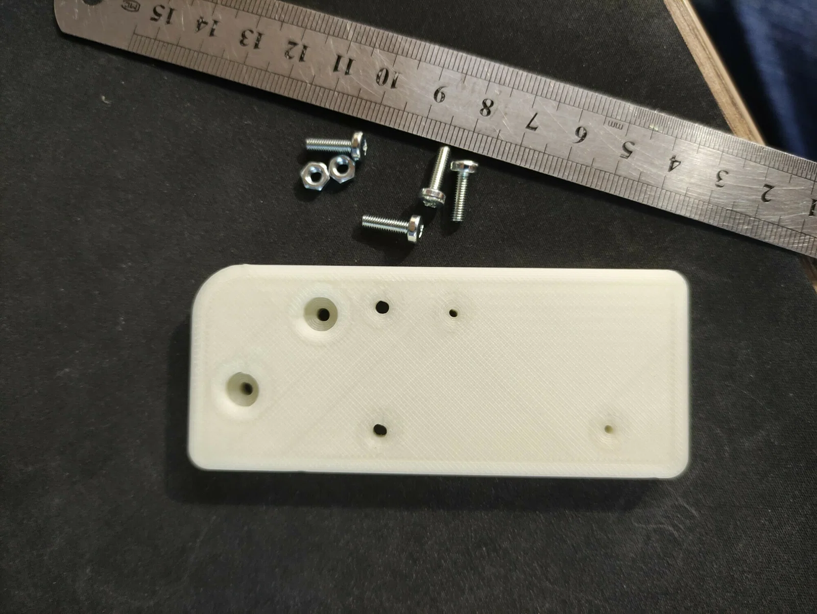 Tháo hai con ốc ở góc trên bên phải đang giữ phần hông máy in. Đặt đế vào vị trí đó và cố định bằng 2 con ốc M3x10. Khoảng cách giữa các lỗ là 15x15mm.